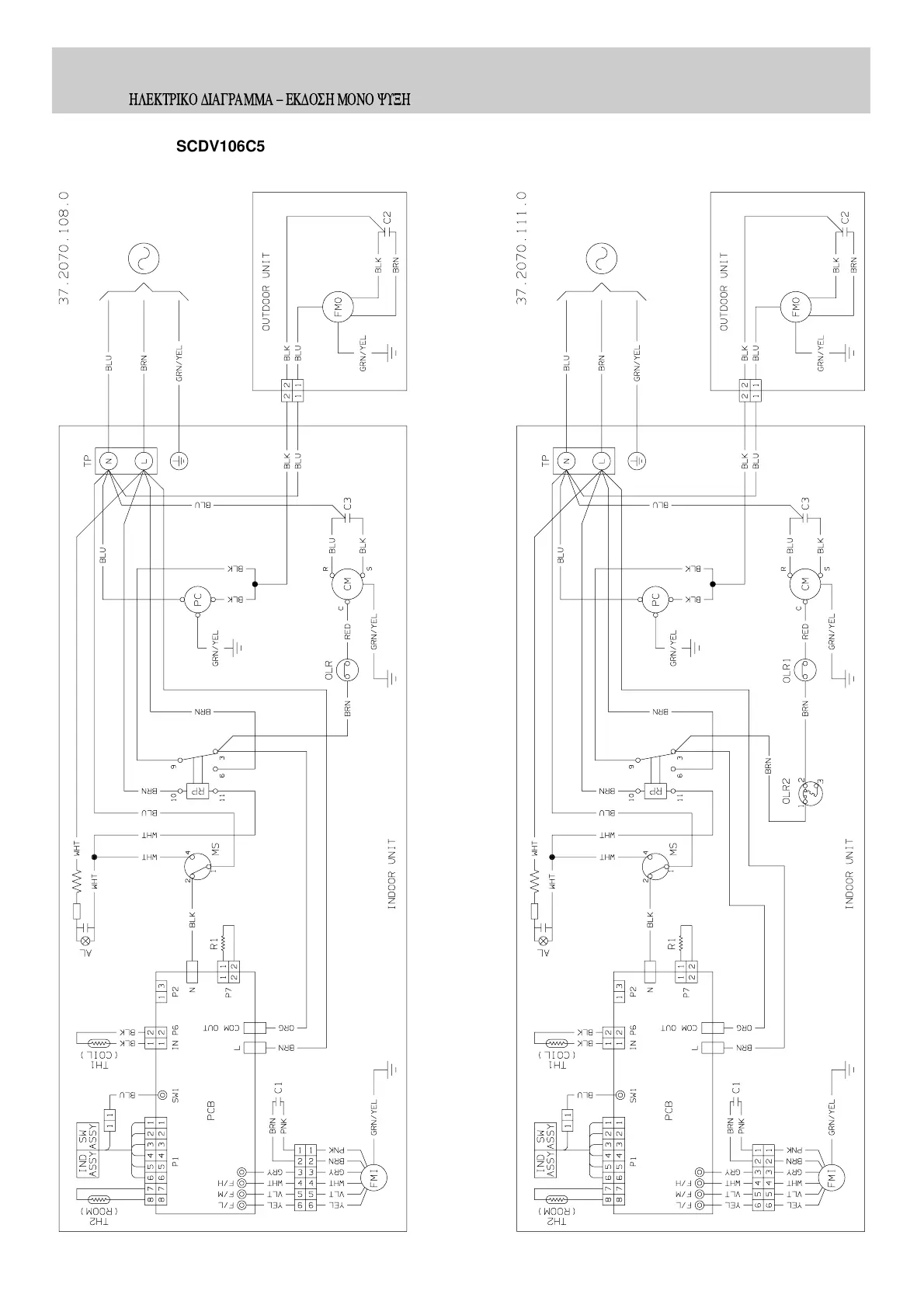 SCHEMA ELETTRICO - VERSIONE SOLO RAFFREDDAMENTO