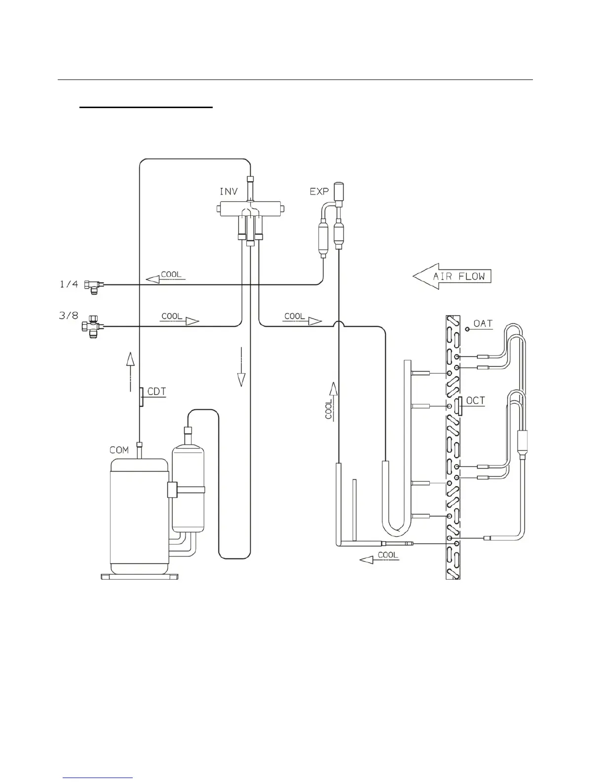 - In heating mode the refrigerant flow is in the opposite direction of the COOL arrows