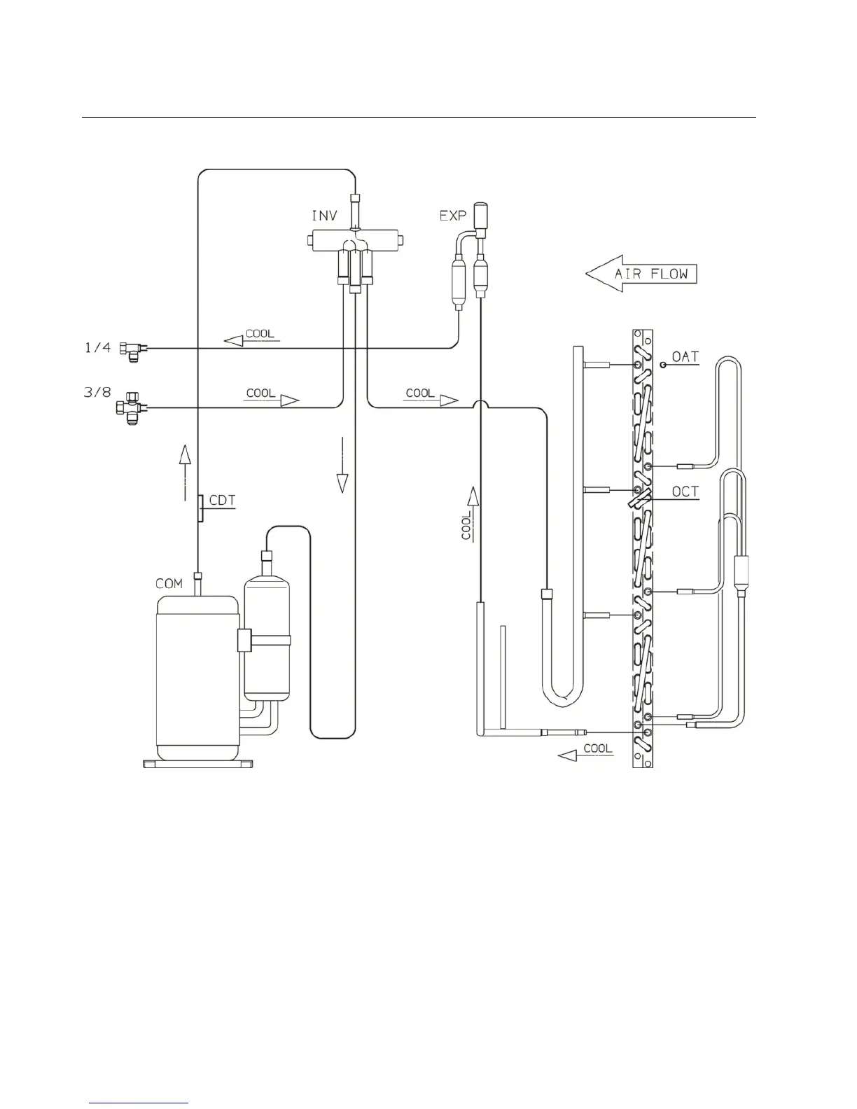 - In heating mode the refrigerant flow is in the opposite direction of the COOL arrows
