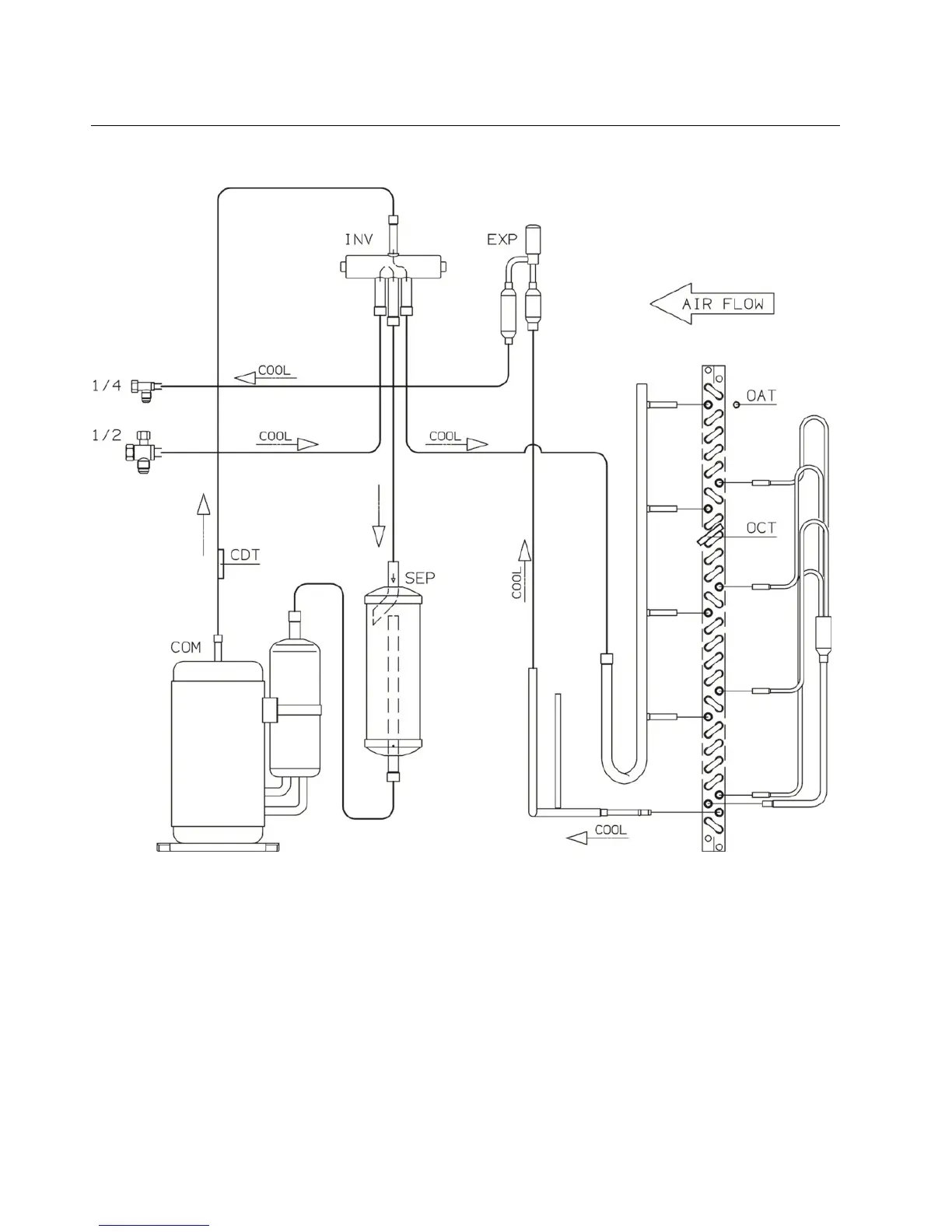 - In heating mode the refrigerant flow is in the opposite direction of the COOL arrows