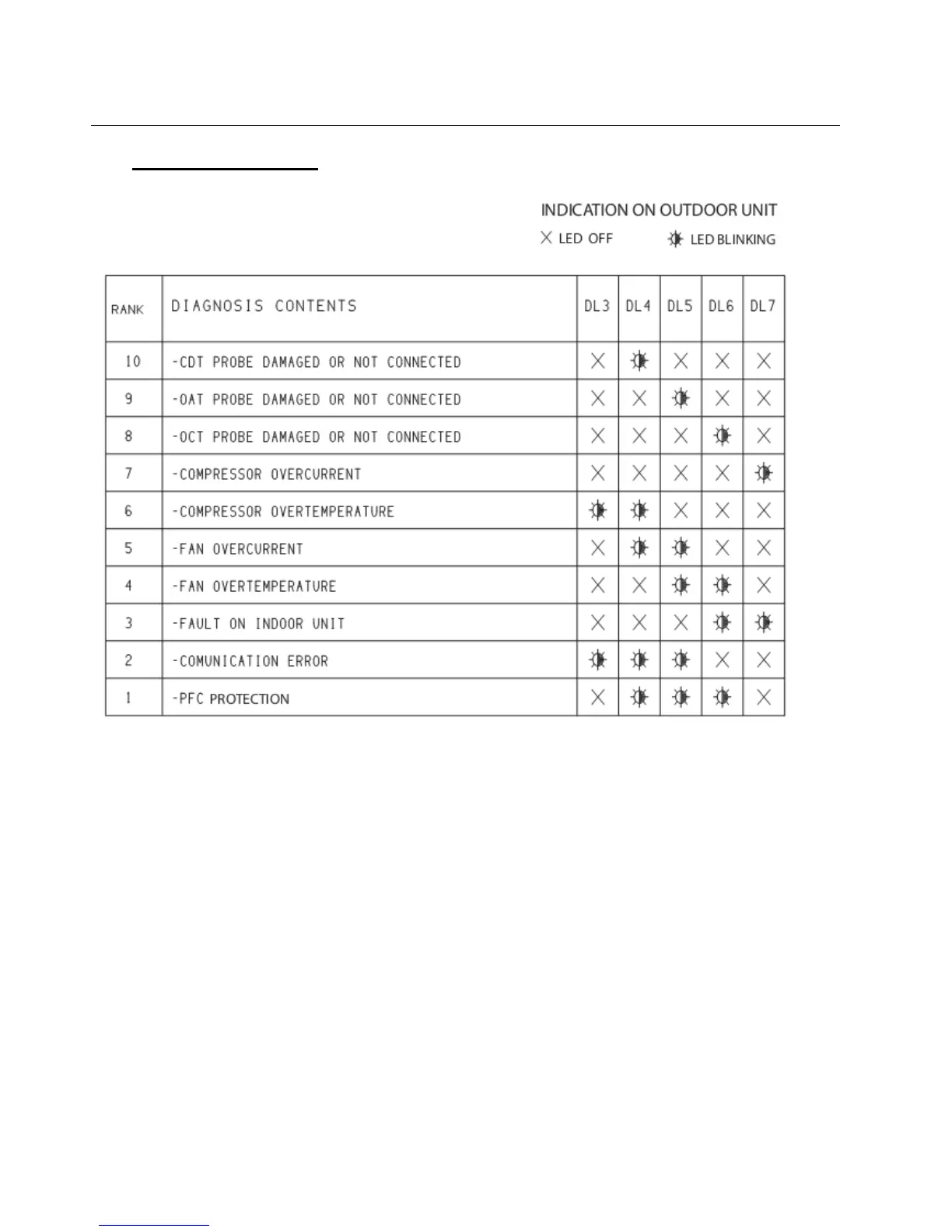 - DL4 is solid ON if the indoor unit is switched ON, otherwise it’s OFF