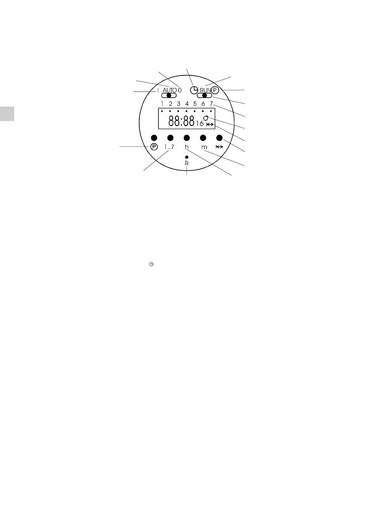 ● Drücken Sie solange die taste 1…7, bis den Tag der Woche oder die Gruppe von Tagen eingestellt werden (ein Pfeil ▲ unter dem
