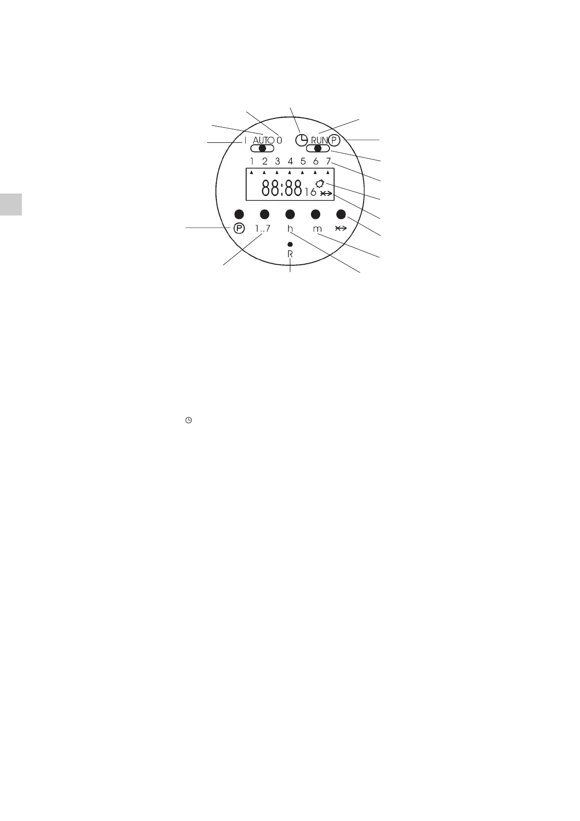 Desplazar el selector en al posición , pulsar el botón 1…7 hasta regular el día de la semana corriente (visualizado par una flecha