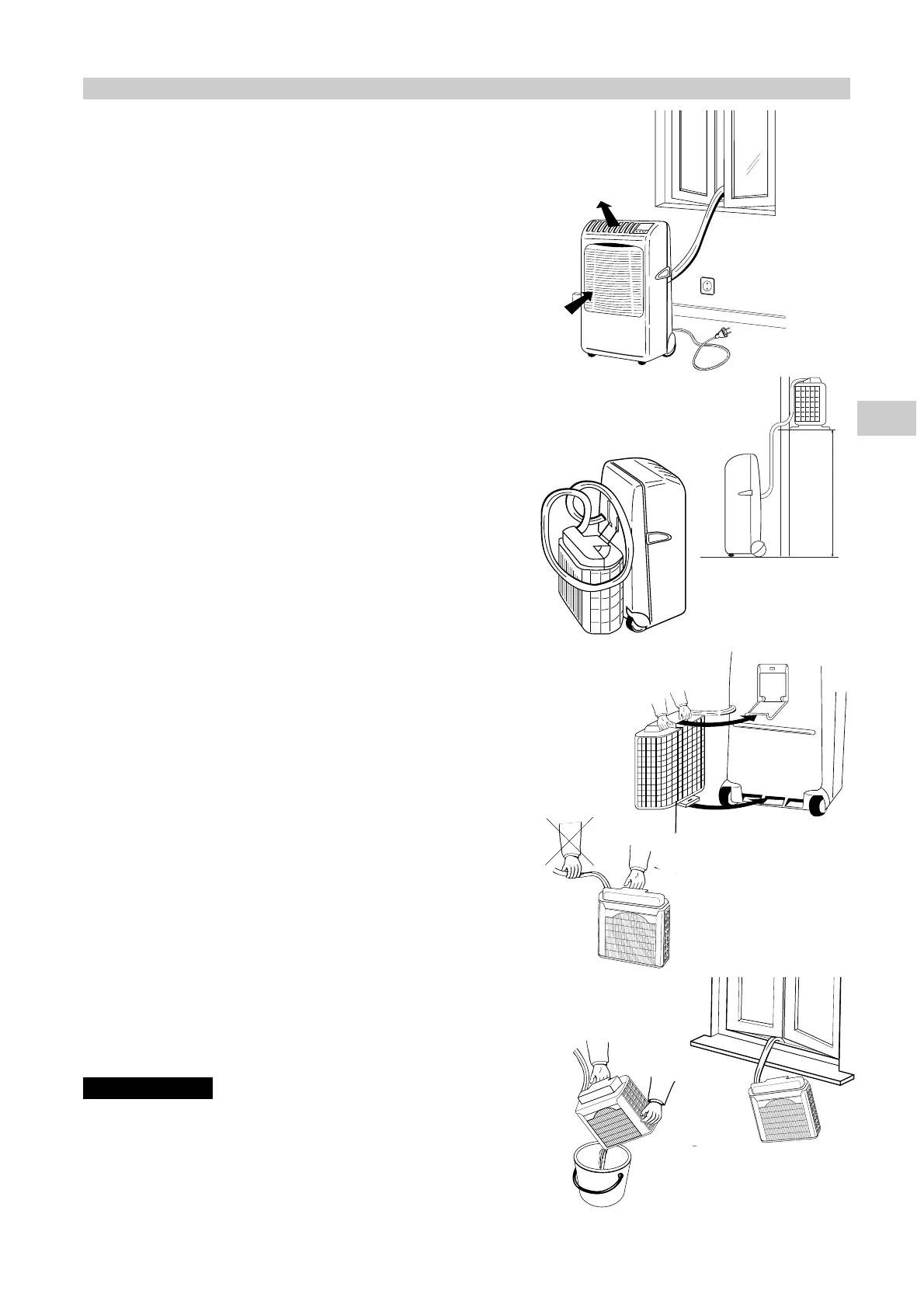 3.Nunca deixe a unidade exterior pendurada no tubo flexível.