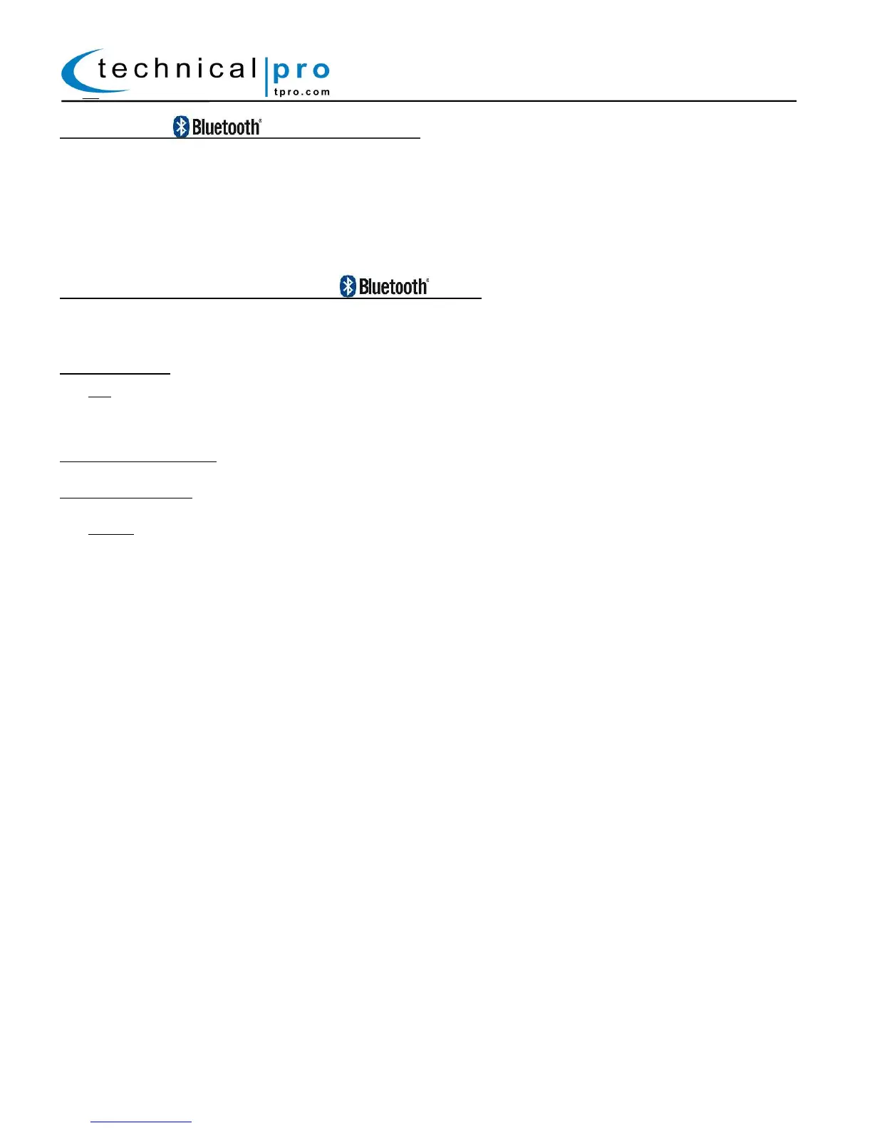 The Bluetooth word mark and logos are registered trademarks owned by SIG, Inc. and any use of such marks by Technical Pro is under license. Other trademarks and trade name are those of