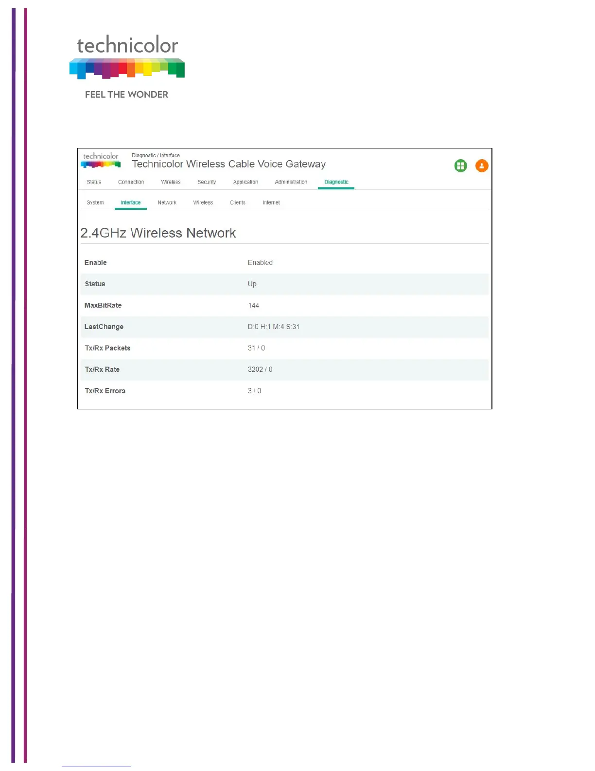The figures below provides status and traffic/error statistics for 2.4GHz network.