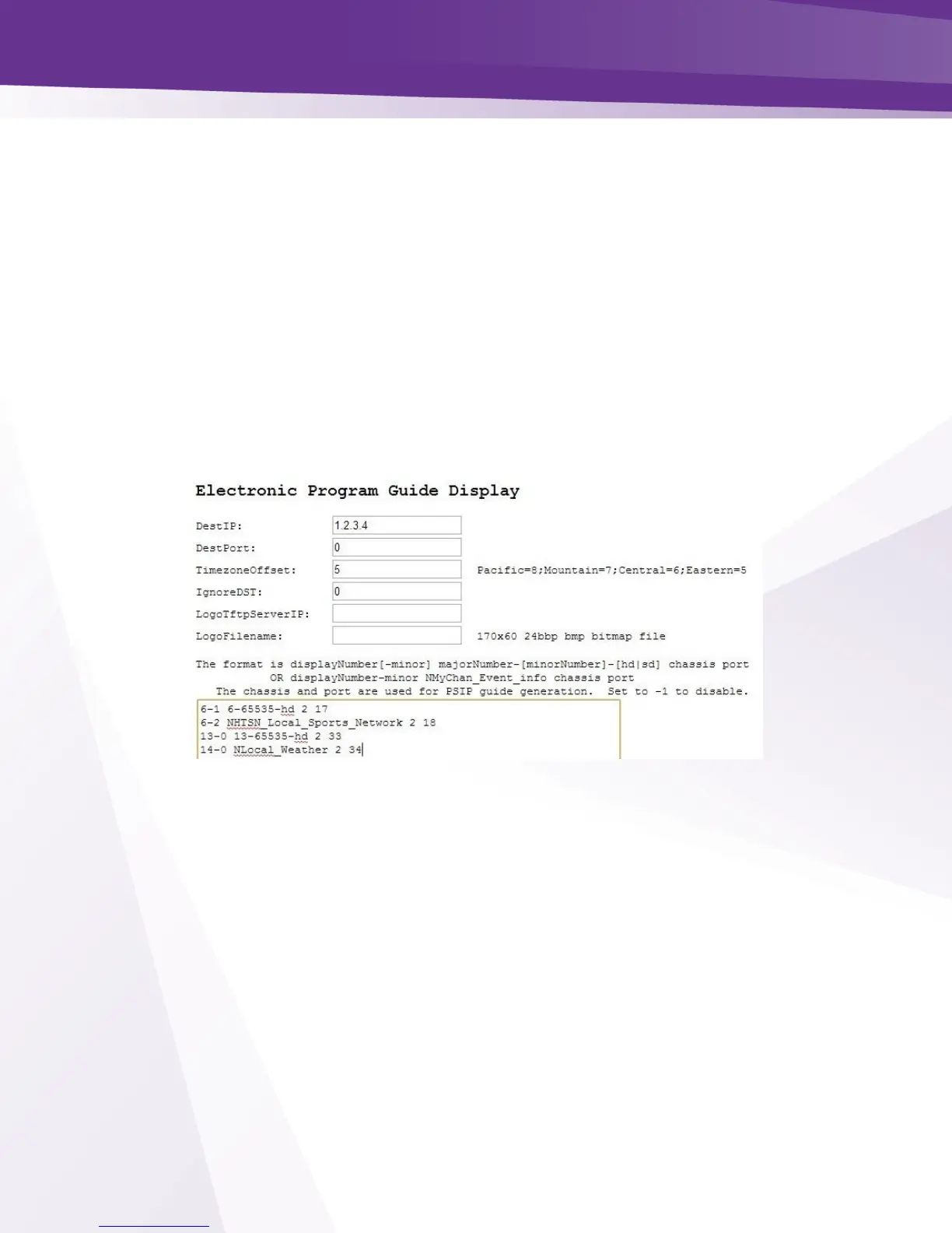If EPG is desired as well as PSIP, the QAM IP and port number can be inserted in the DestIP