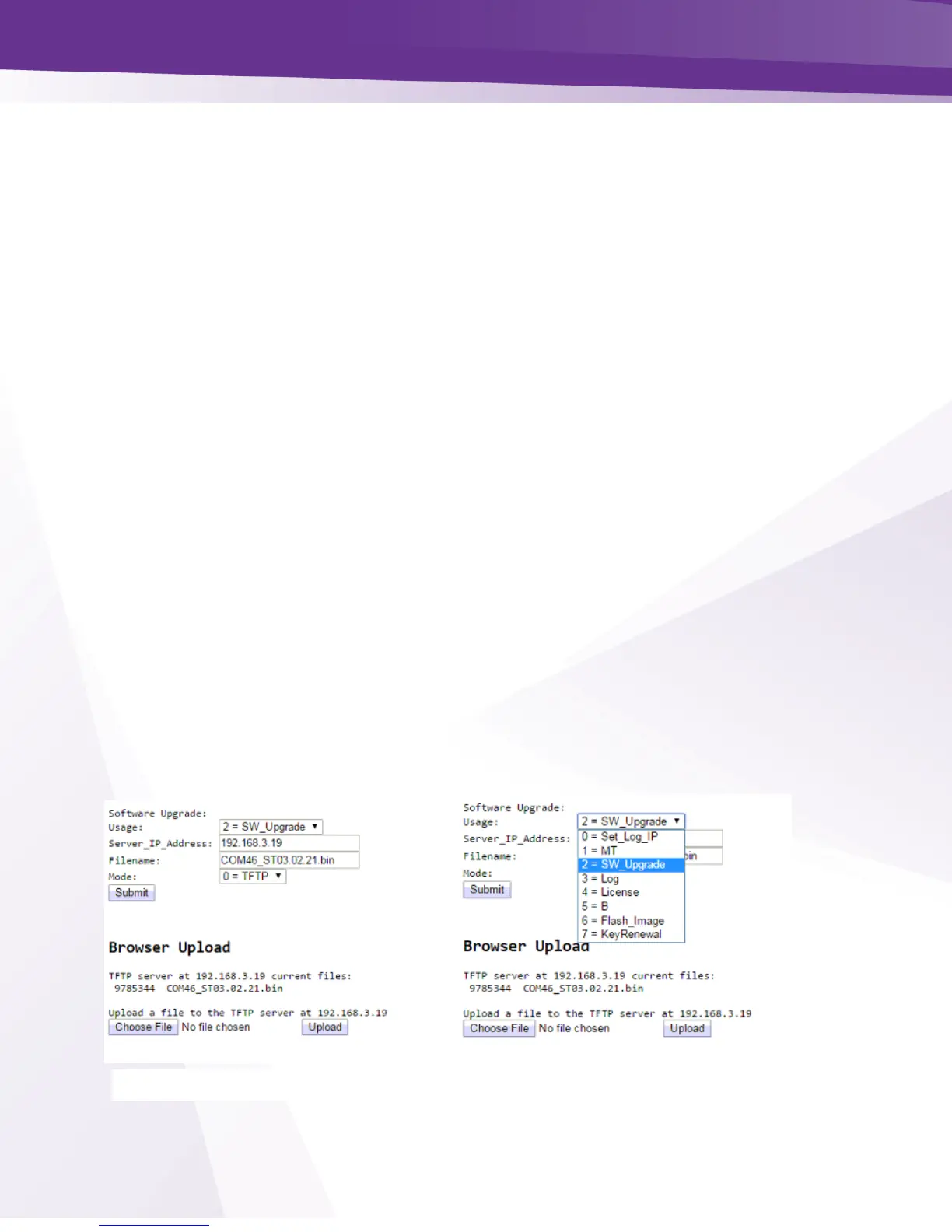 Figure 39 below shows in detail the upgrade section available on the PairingInfo page.