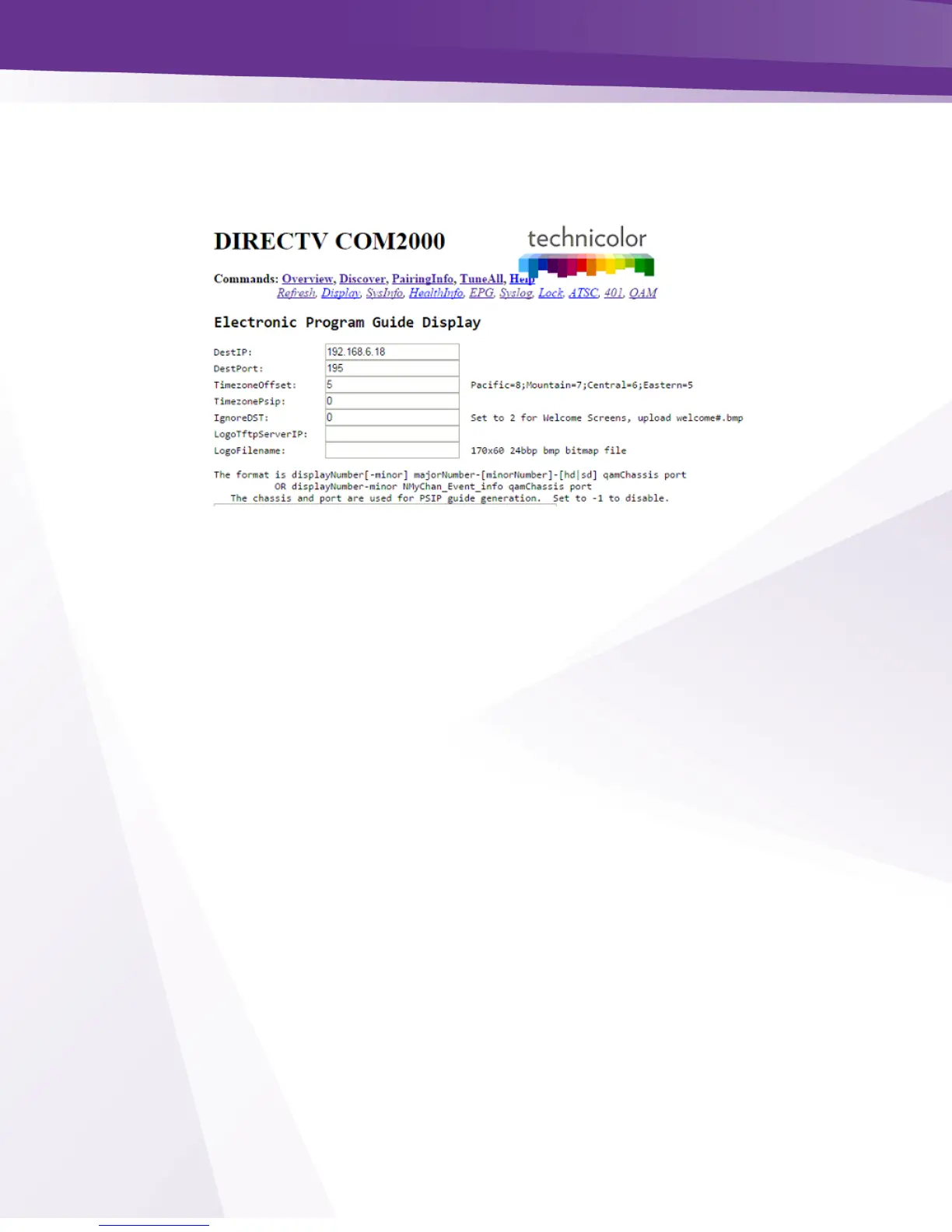 Figure 45 - COM2000 EPG Page
