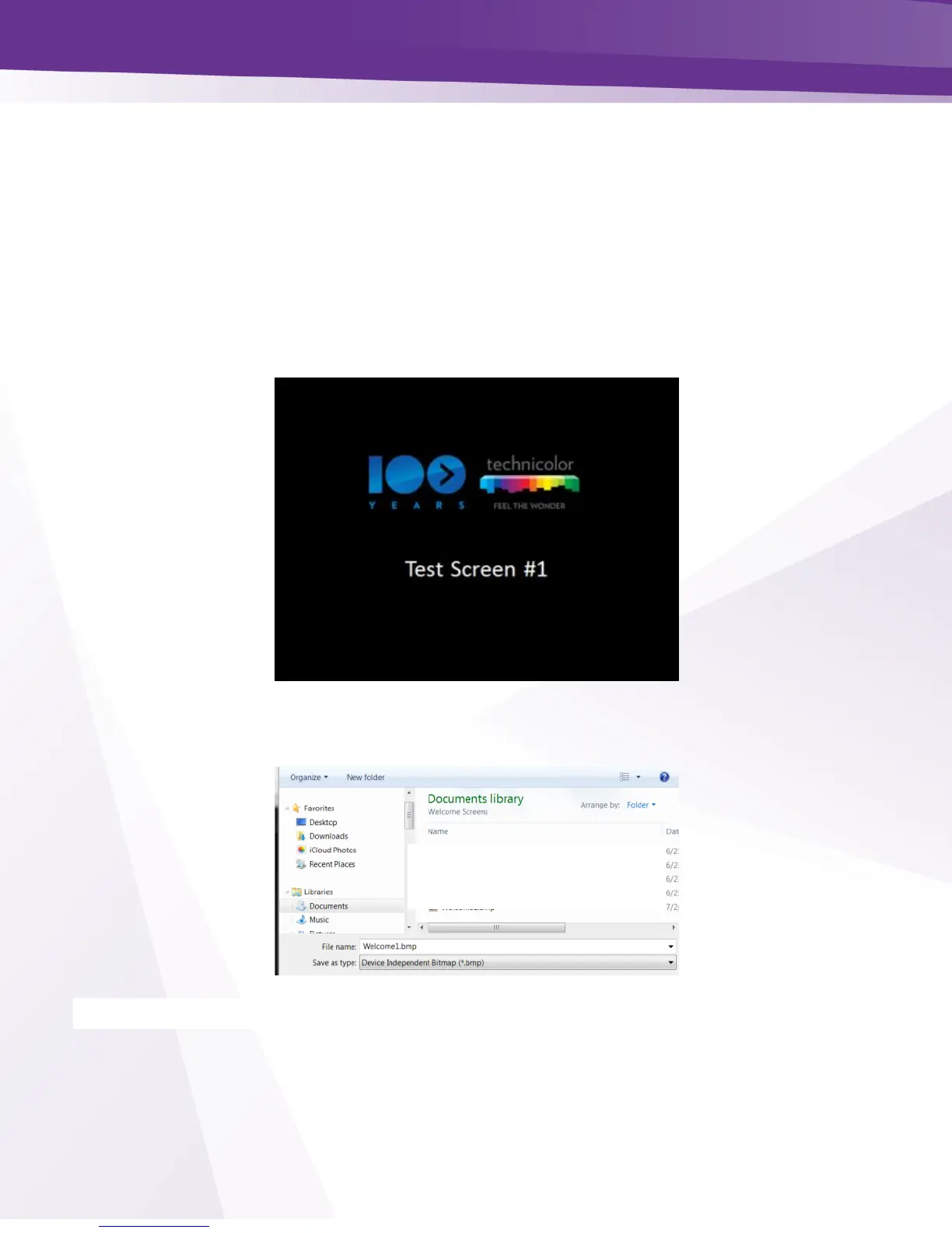 Welcome screens need to be formatted as 24 bit 720x480 bitmaps.