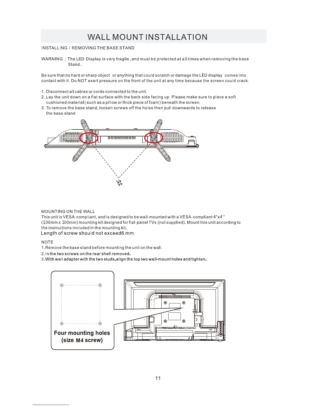 Technicolor TC2450A - Base Stand Installation and Removal; Wall Mounting Procedure