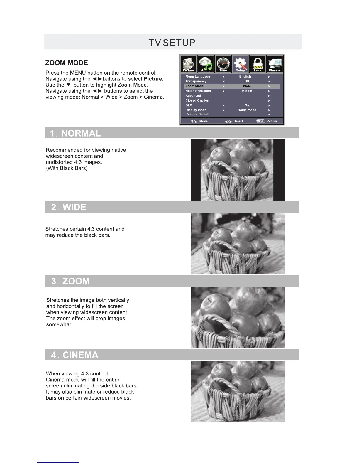 Technicolor TC2450A - Zoom Mode Adjustment; Specifications