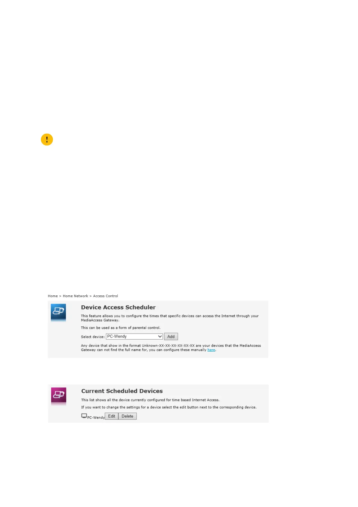 adding an access schedule for specific devices. You can define two schedules for each device: