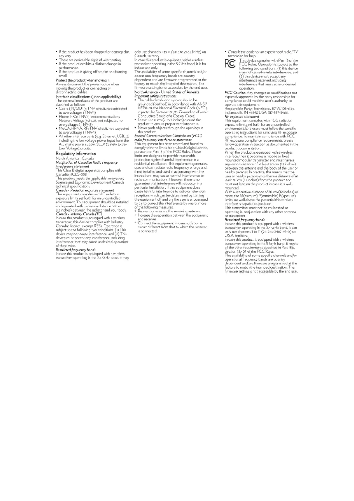 Technicolor TX061AEI - Regulatory Compliance and RF Exposure; Interface Classifications and Product Movement; Canadian Radio Frequency Interference; US FCC Radio Frequency Interference and Exposure
