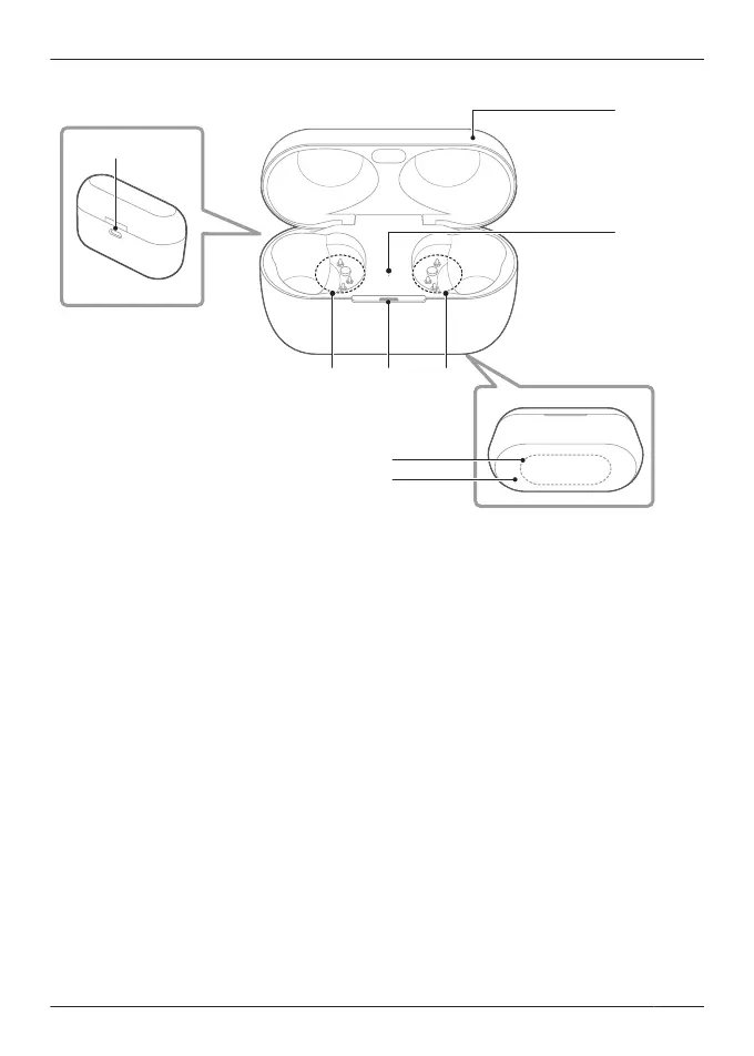 R Indicates the status of the earphones when they are in the charging cradle.