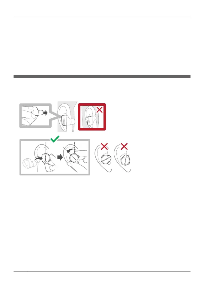 R With the Technics logo oriented vertically, insert into your ears while twisting slightly