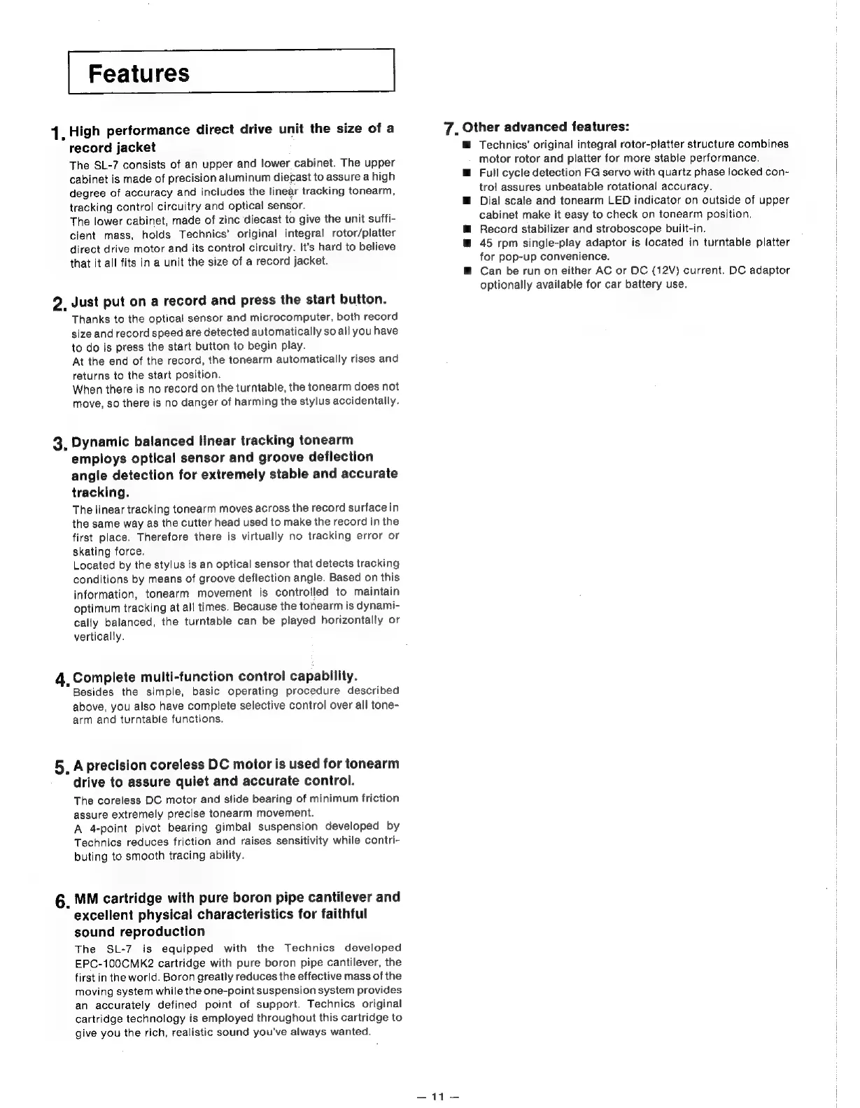 Technics QUARTZ SL-7 - Other Advanced Features