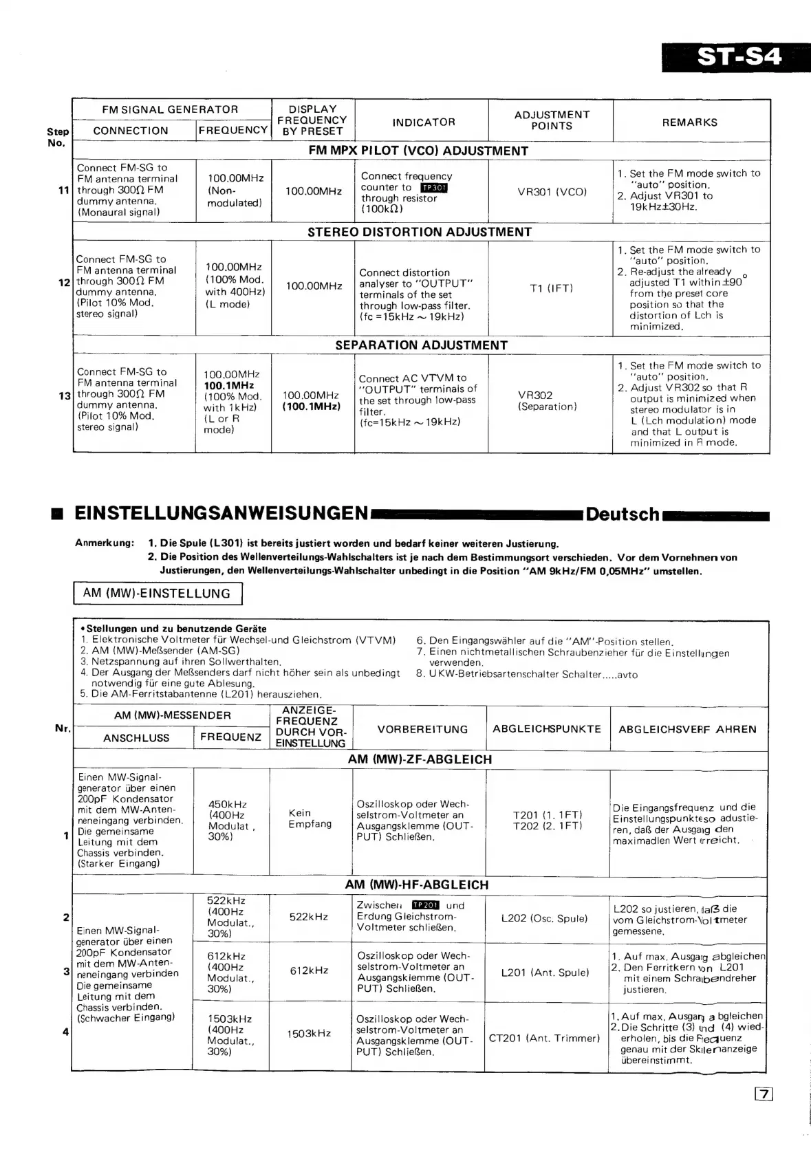 Technics QUARTZ ST-S4 - Separation Adjustment