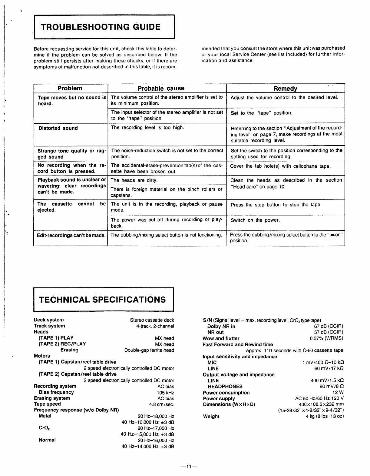 Double-gap ferrite head Approx. 11% seconds with C-60 cassette tape