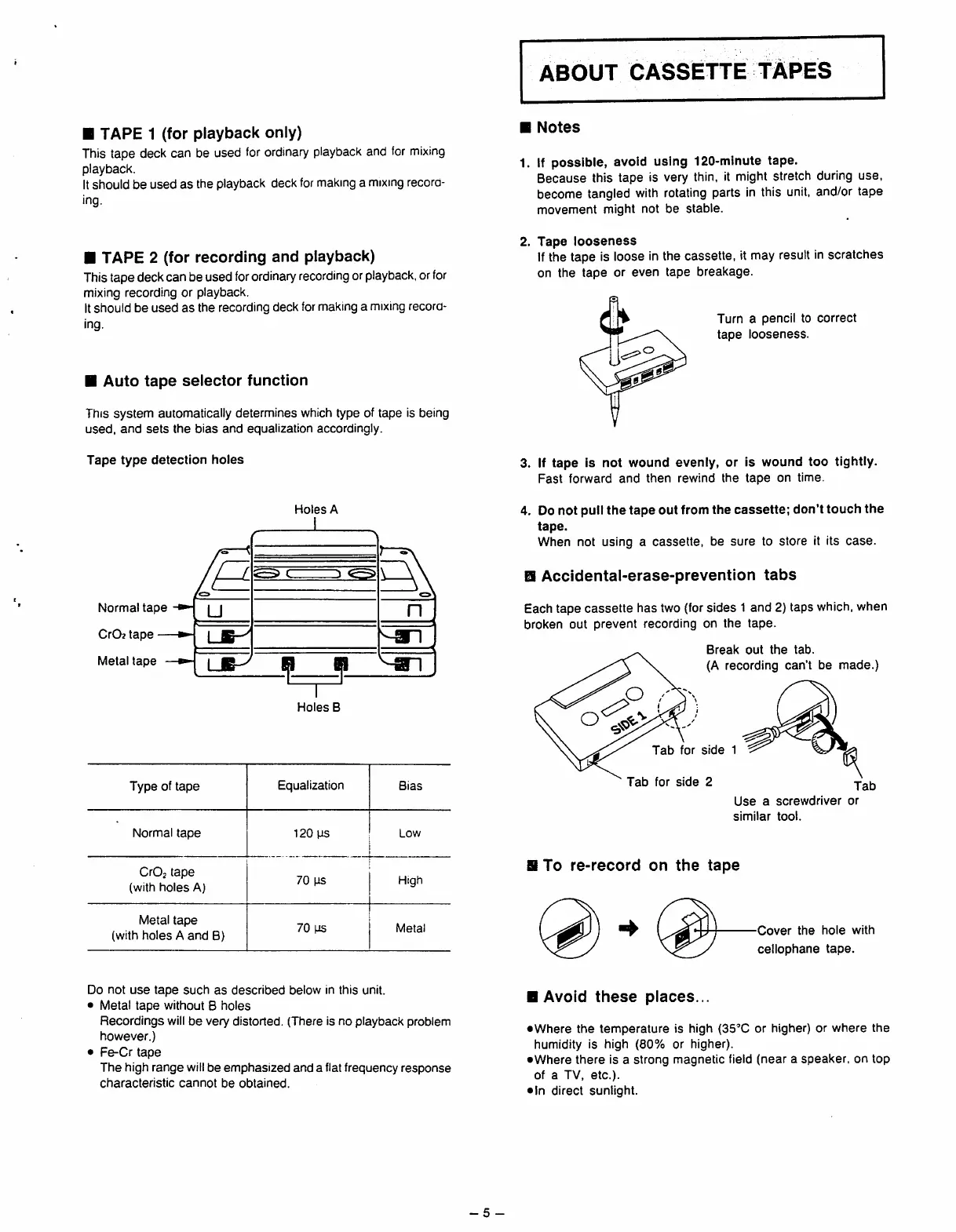Each tape cassette has two (for sides 1and 2) taps which, when