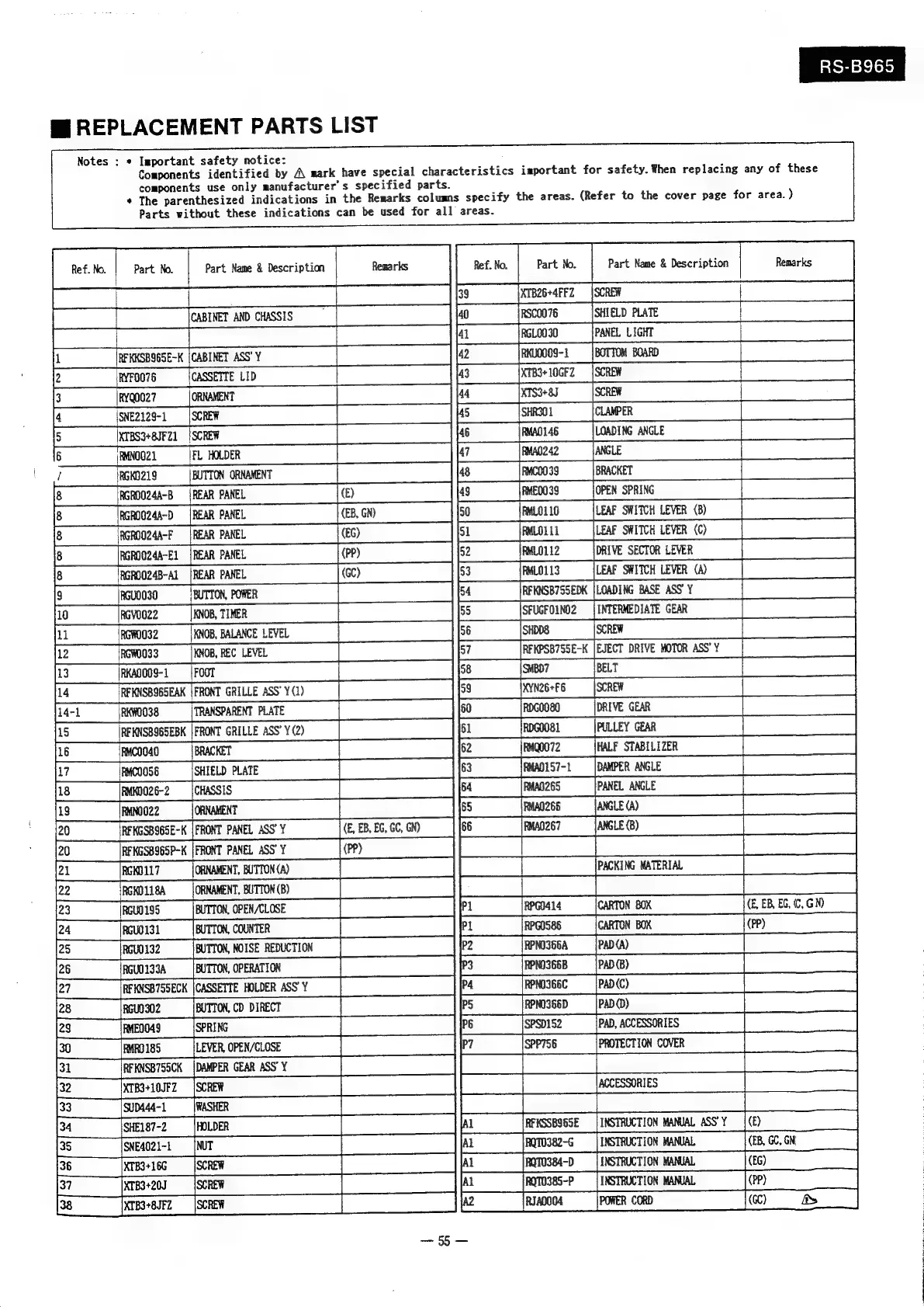 Other manuals for Technics RS-B965