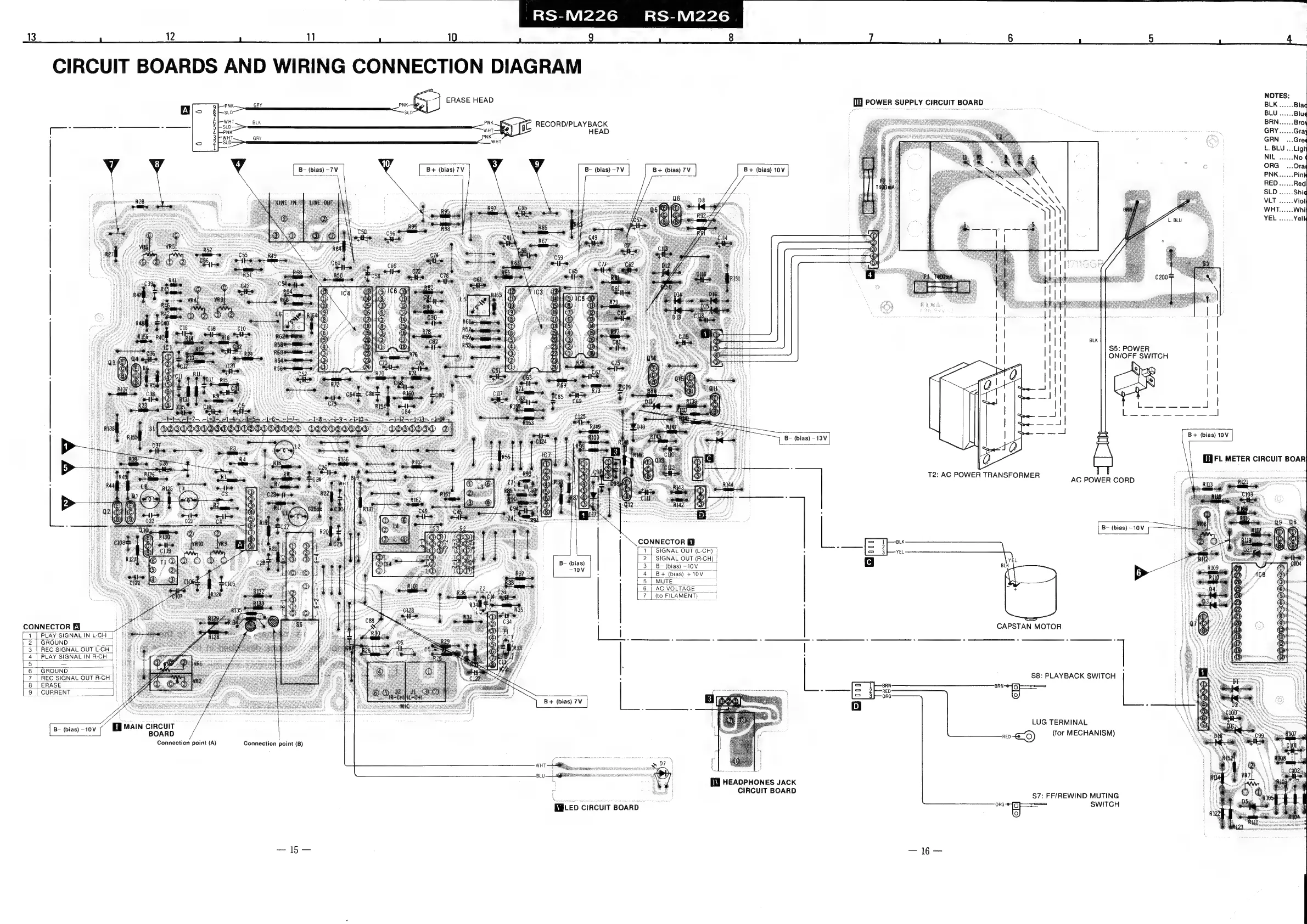 Technics RS-M226 - Circuit Boards and Wiring Connection Diagram; Wiring Diagrams - Main and Power Supply Boards