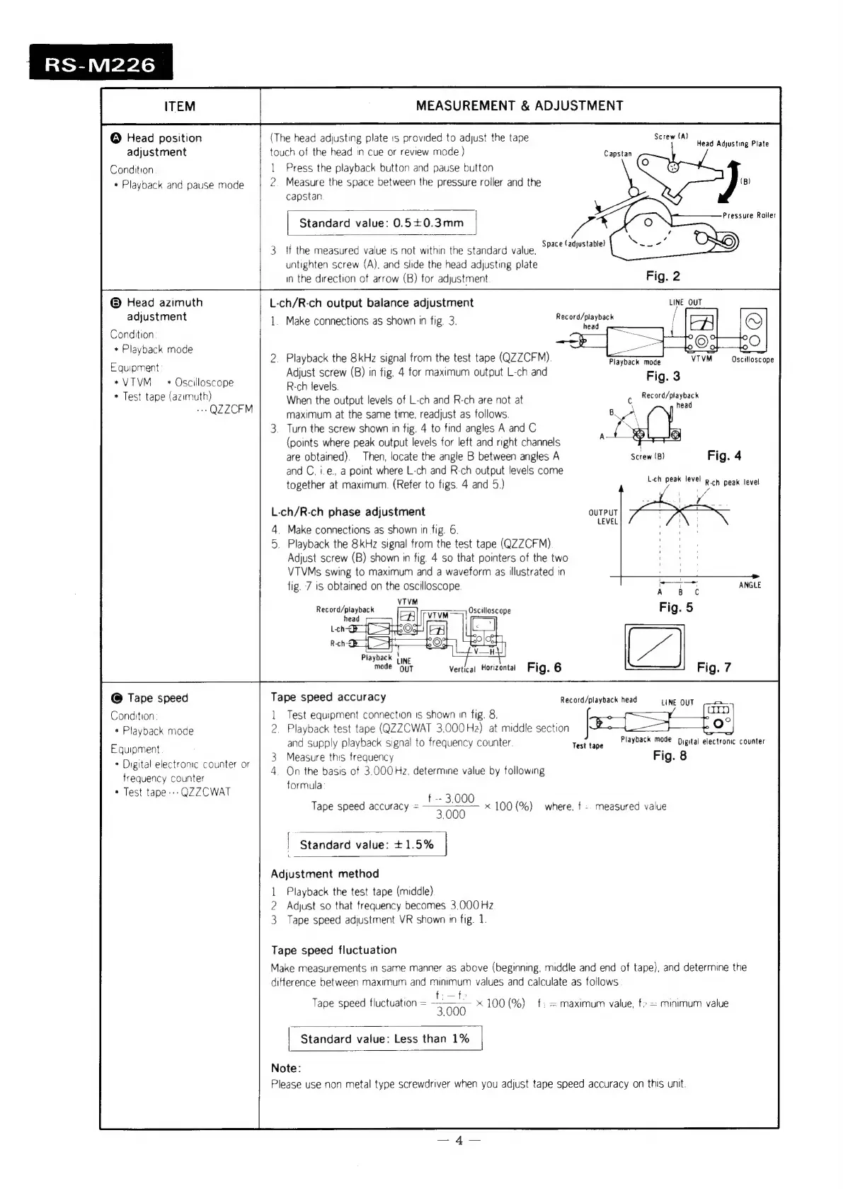 Technics RS-M226 - Head Position Adjustment