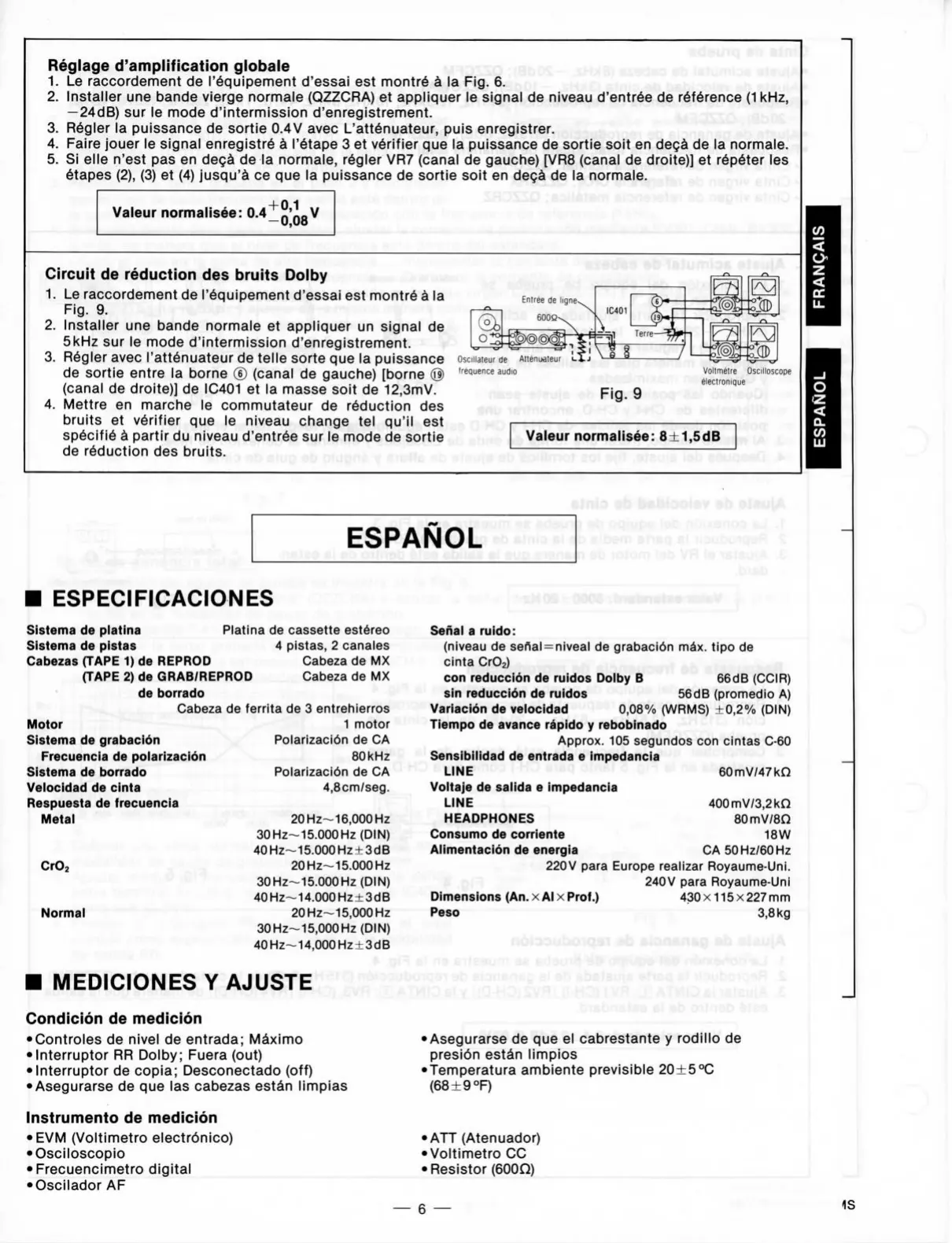Si elle n'est pas en degè de la normale, régler VR7 (canal de gauche) [VR8 (canal de droite)] et répéter les