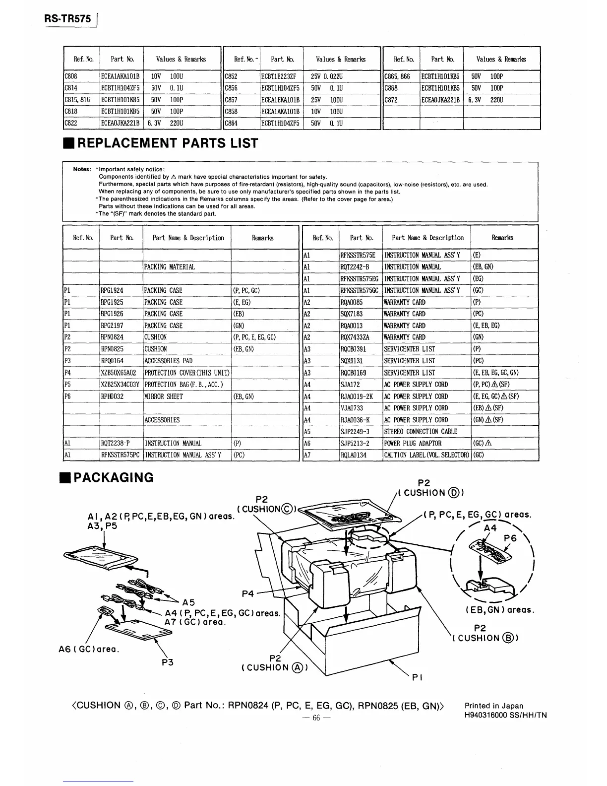 When replacing any of components,be sure to use only manufacturers specified parts shown in the parts list.