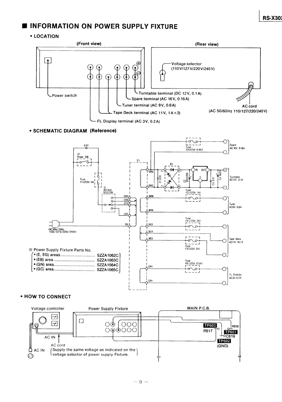 Technics RS-X302 - Information on Power Supply Fixture; Schematic Diagram