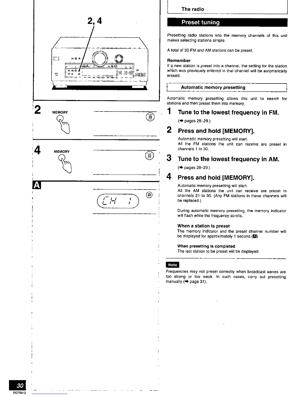 Technics SA-DA8 - Radio Preset Tuning; Automatic Memory Presetting