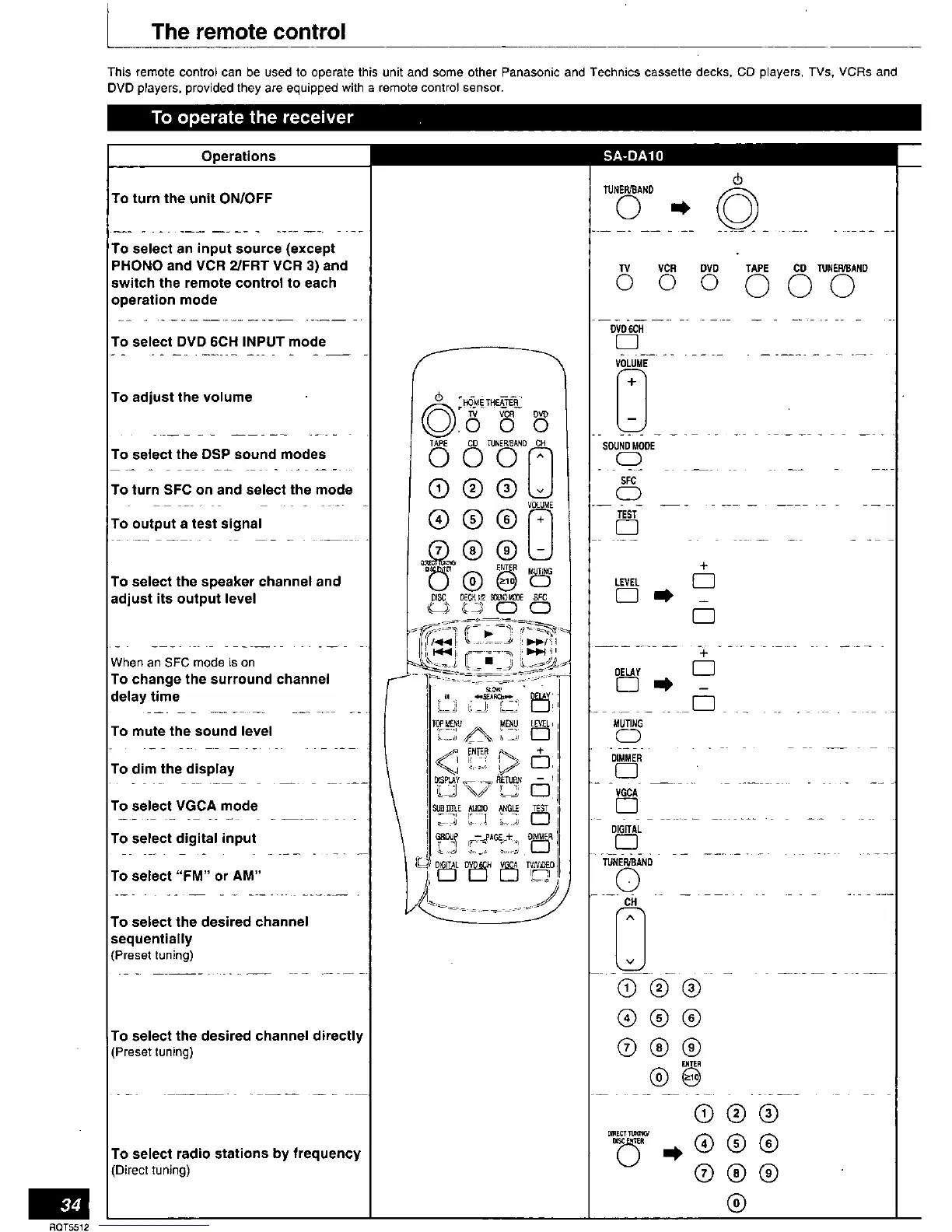 Technics SA-DA8 - Remote Control Operations: Receiver; Basic Receiver Control Functions