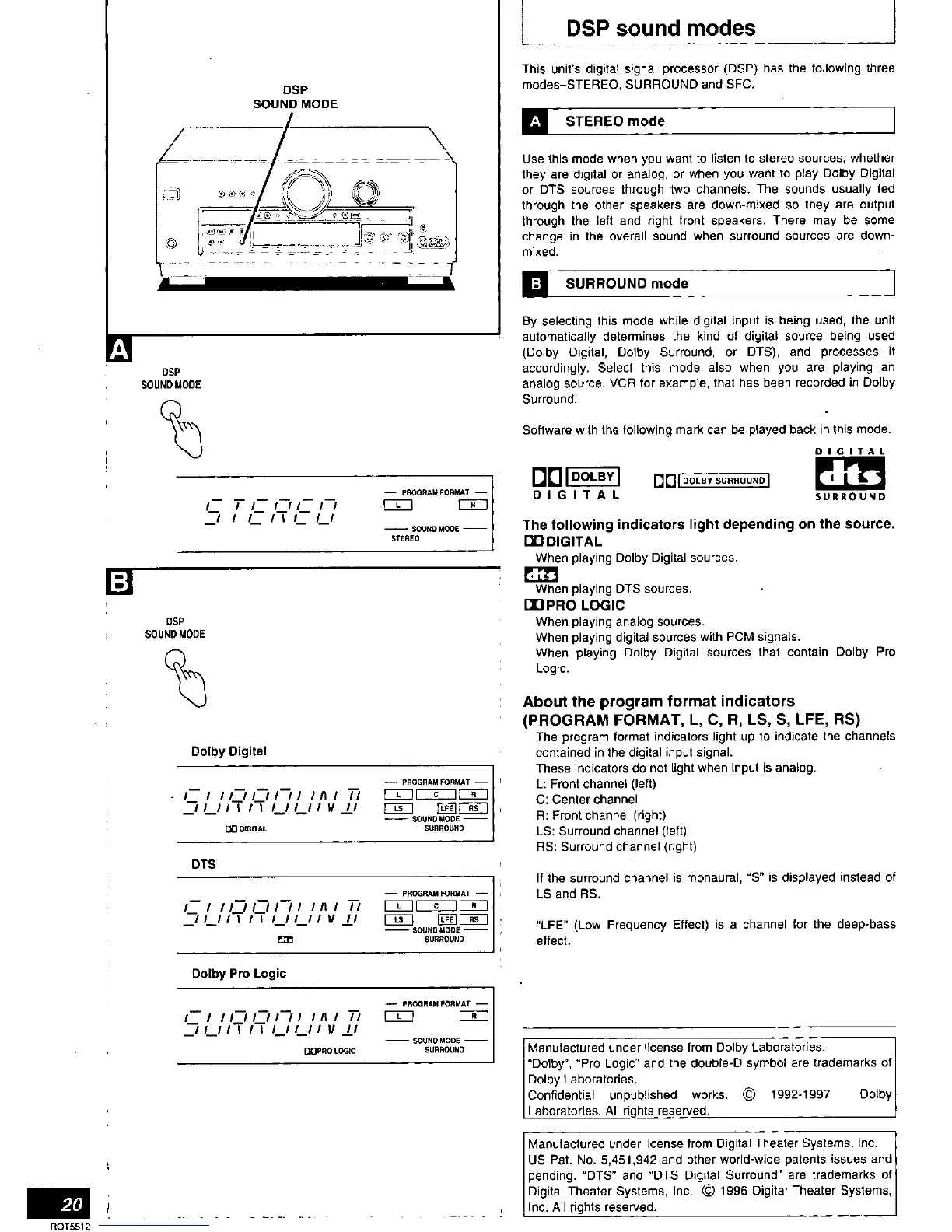 Technics SA-DX1040 - DSP Sound Modes Explained; Stereo Mode Functionality; Surround Mode Functionality