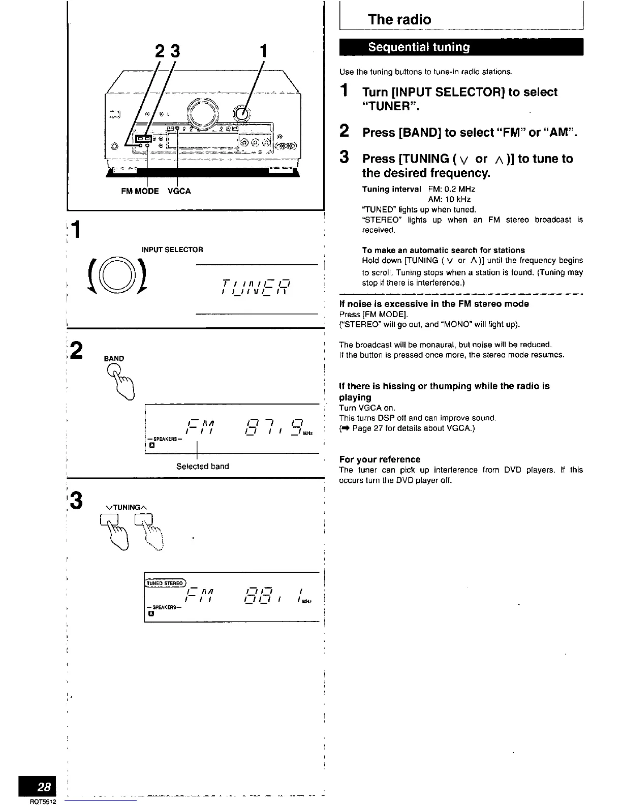 Technics SA-DX1040 - Radio Tuning Operations; Sequential Tuning; Automatic Station Search; Reducing FM Stereo Noise