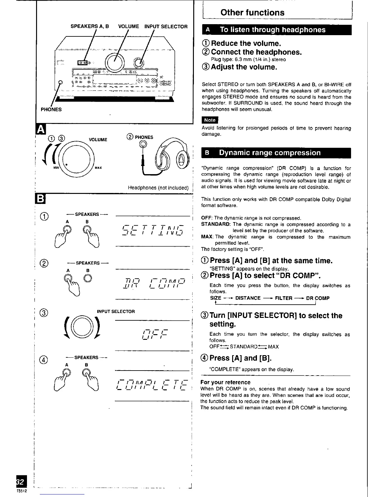 Technics SA-DX1040 - Additional Functions: Headphones & Compression; Listening Through Headphones; Dynamic Range Compression (DR COMP)