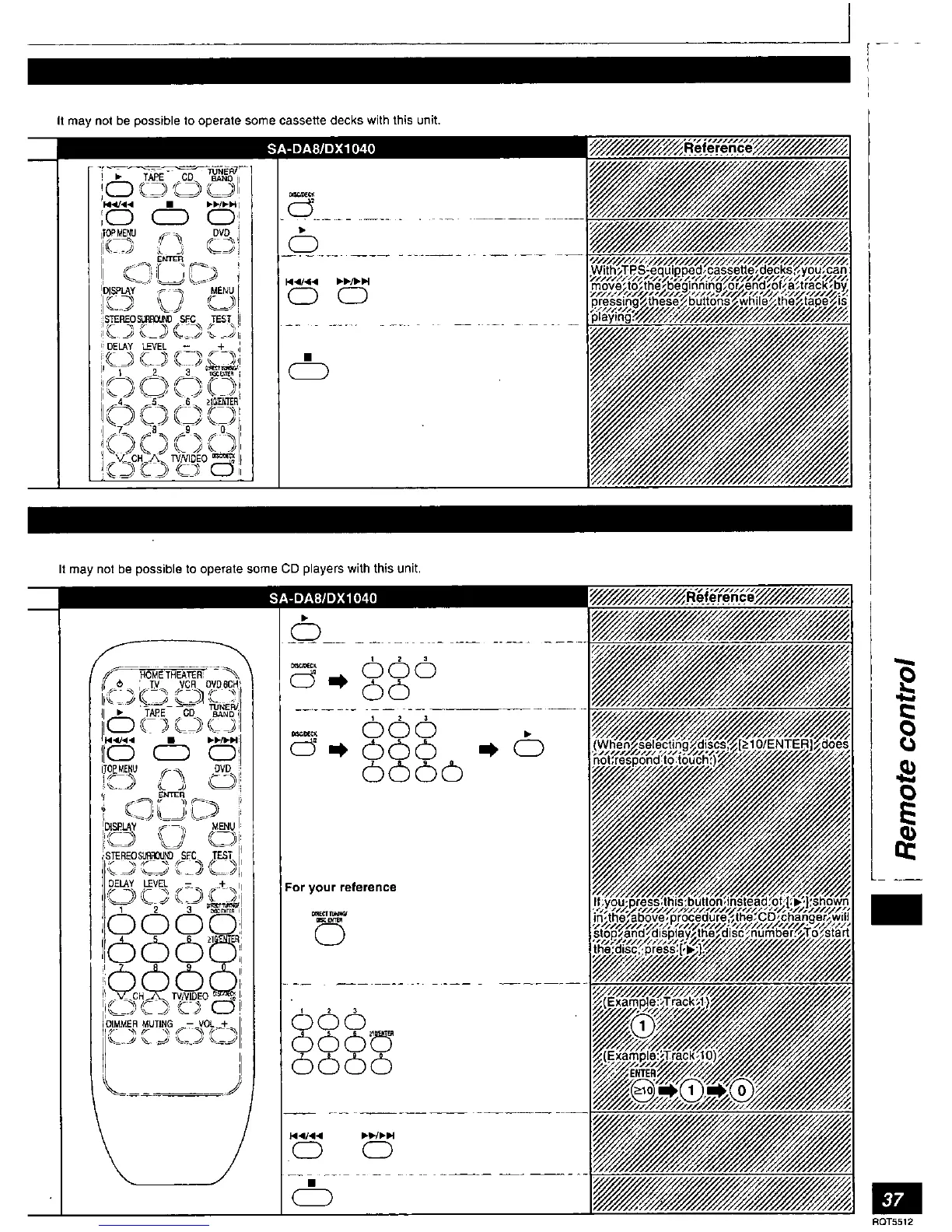 Technics SA-DX1040 - Remote Control: Deck & Player Reference