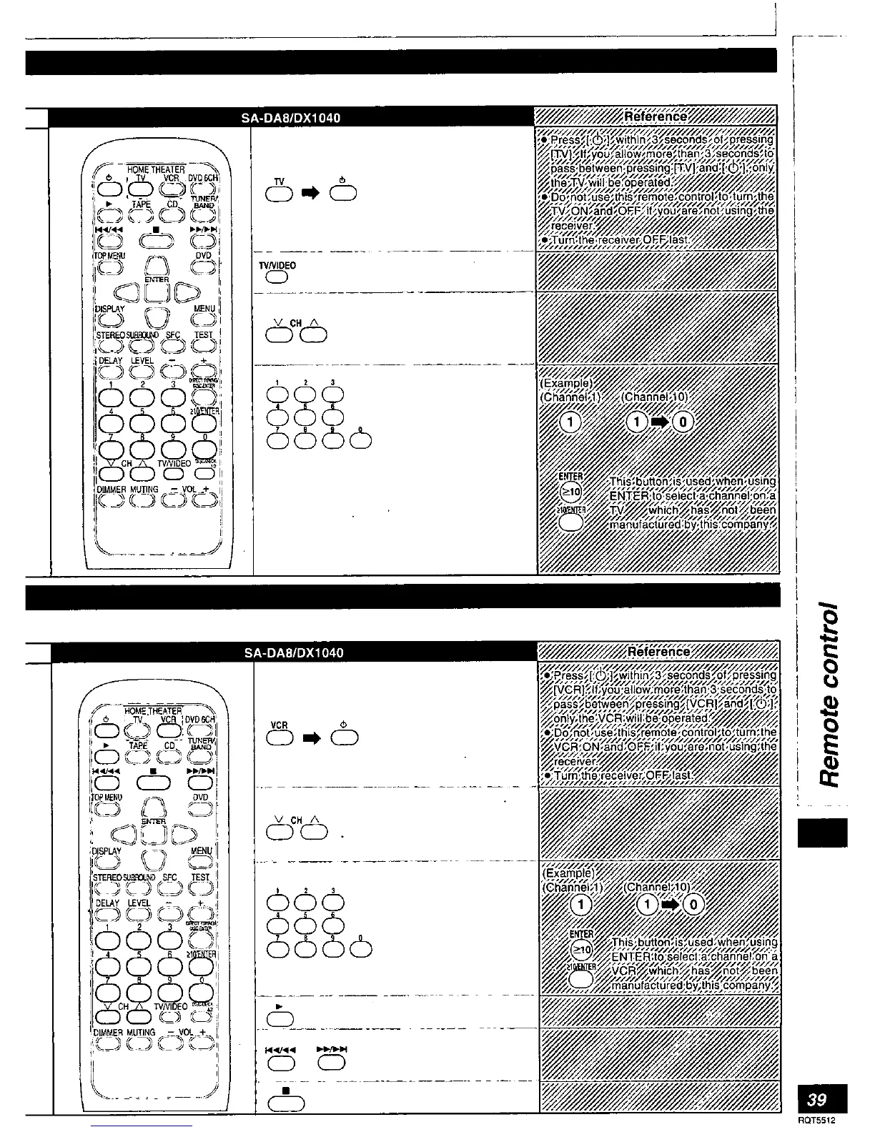 Technics SA-DX1040 - Remote Control: TV & VCR Reference