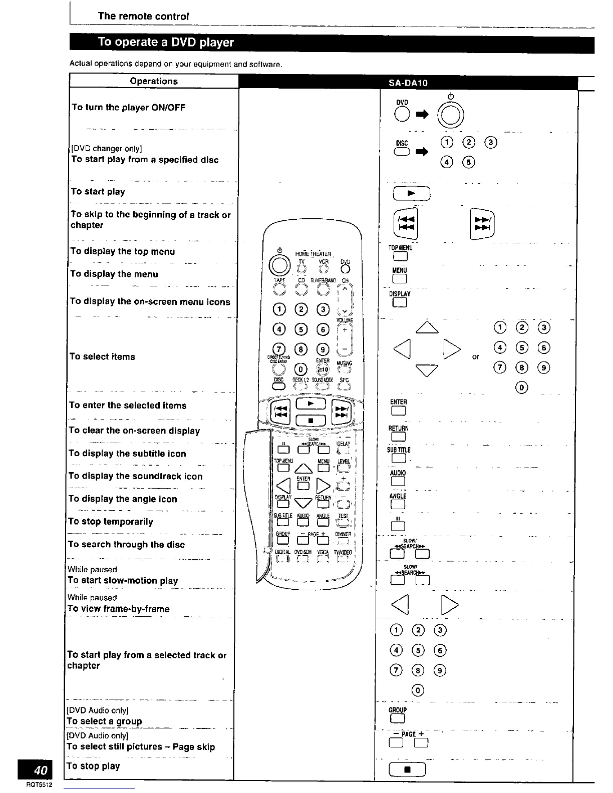 Technics SA-DX1040 - Remote Control: DVD Player Operations