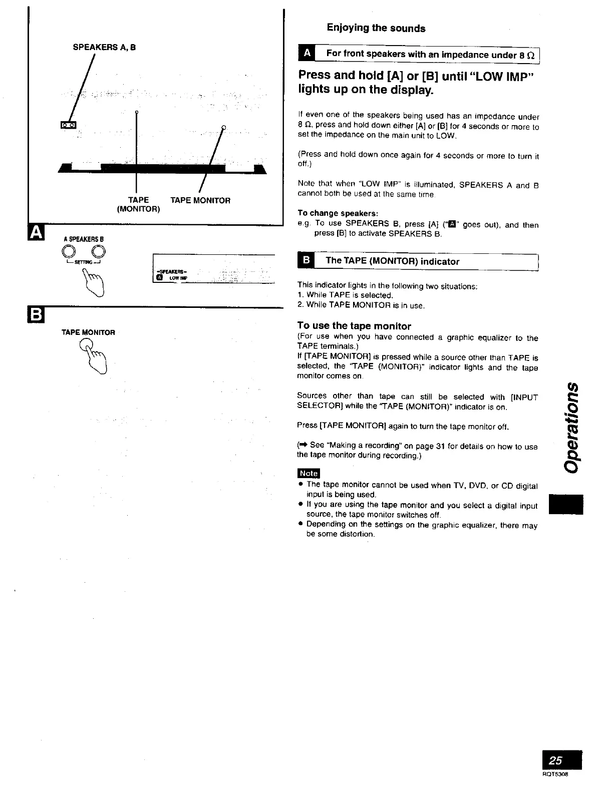 Note that when "LOW IMP" is illuminated, SPEAKERS A and B