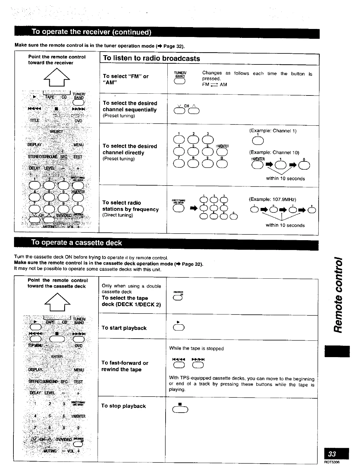 Make sure the remote control is in the tuner operation mode (=,_ Page 32).