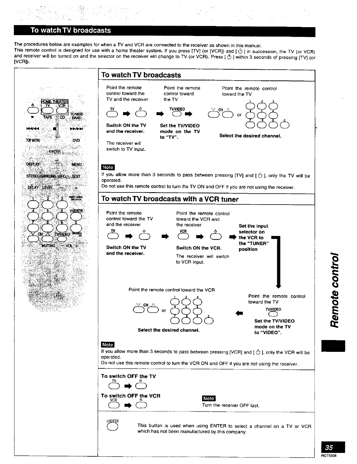 and receiver will be turned on and he se ector on the receiver will change to TV (or VCR) Press [ _ ] within 3 seconds of