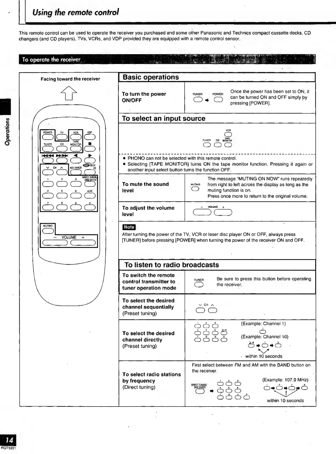 Technics SA-EX 140 - Using the Remote Control Ooo; To Operate the Receiver; Ee Ceencneetenenees
