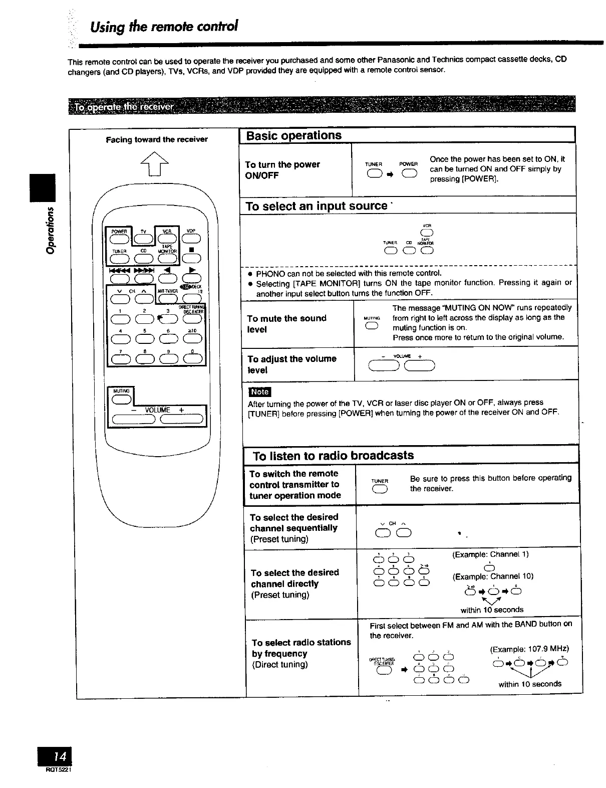 This remote control can be used to operate the receiver you purchased and some other Panasonic and Technics compact cassette decks, CD