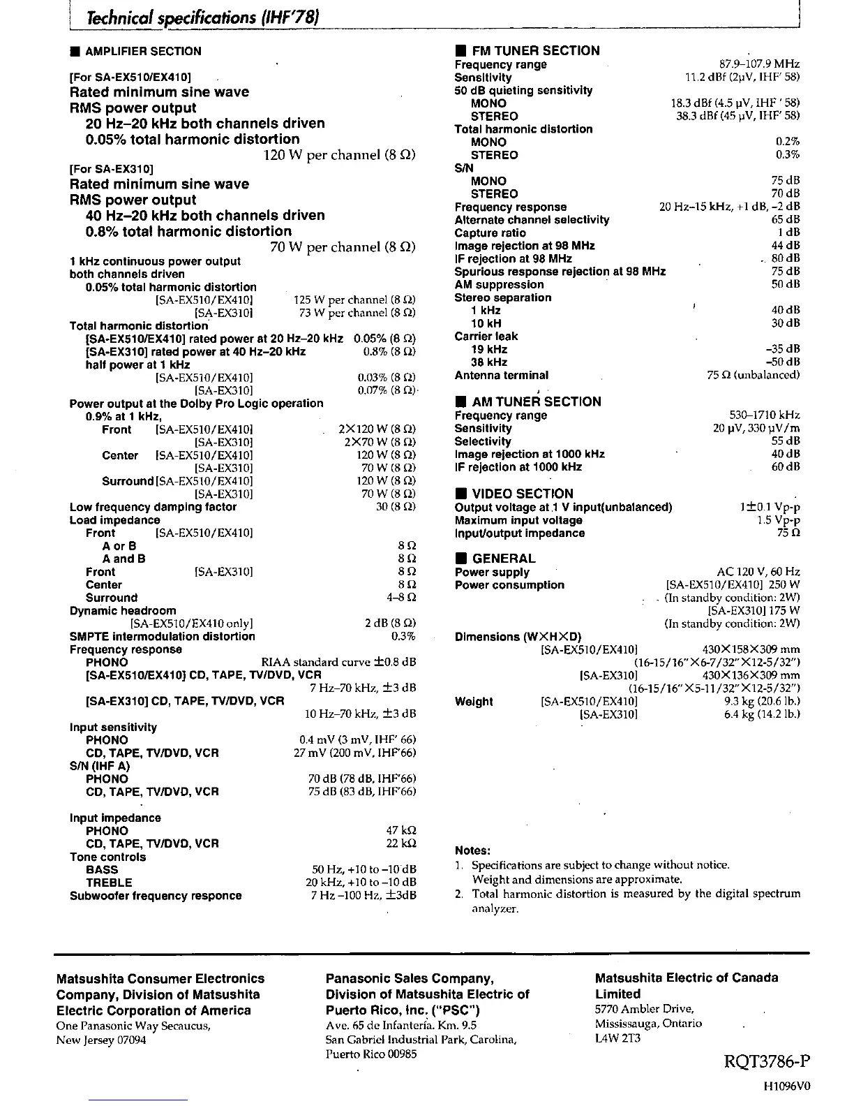 Other manuals for Technics SA-EX310