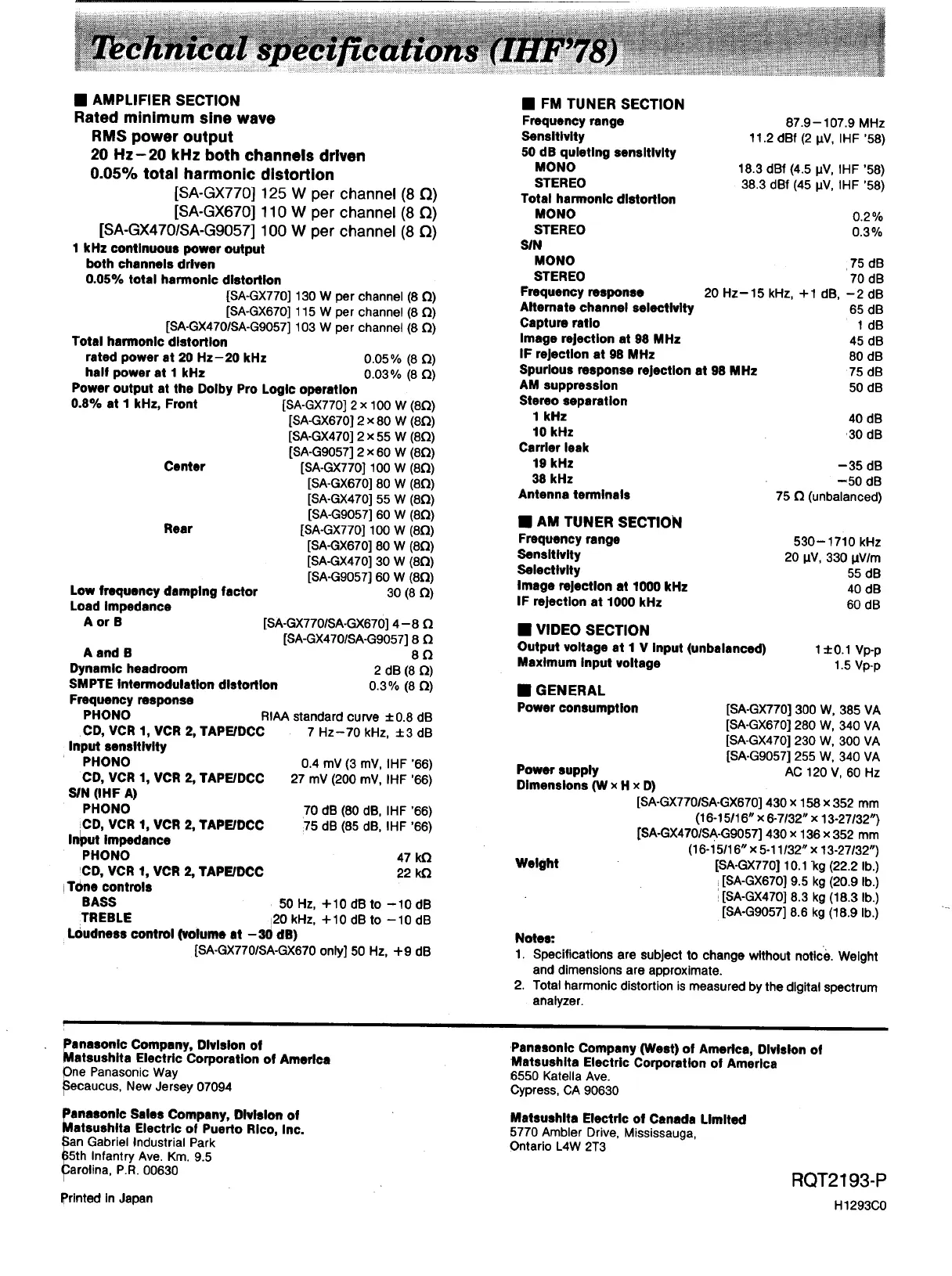 [SA-GX470/SA-G9057]103 W per channel (8 Q)