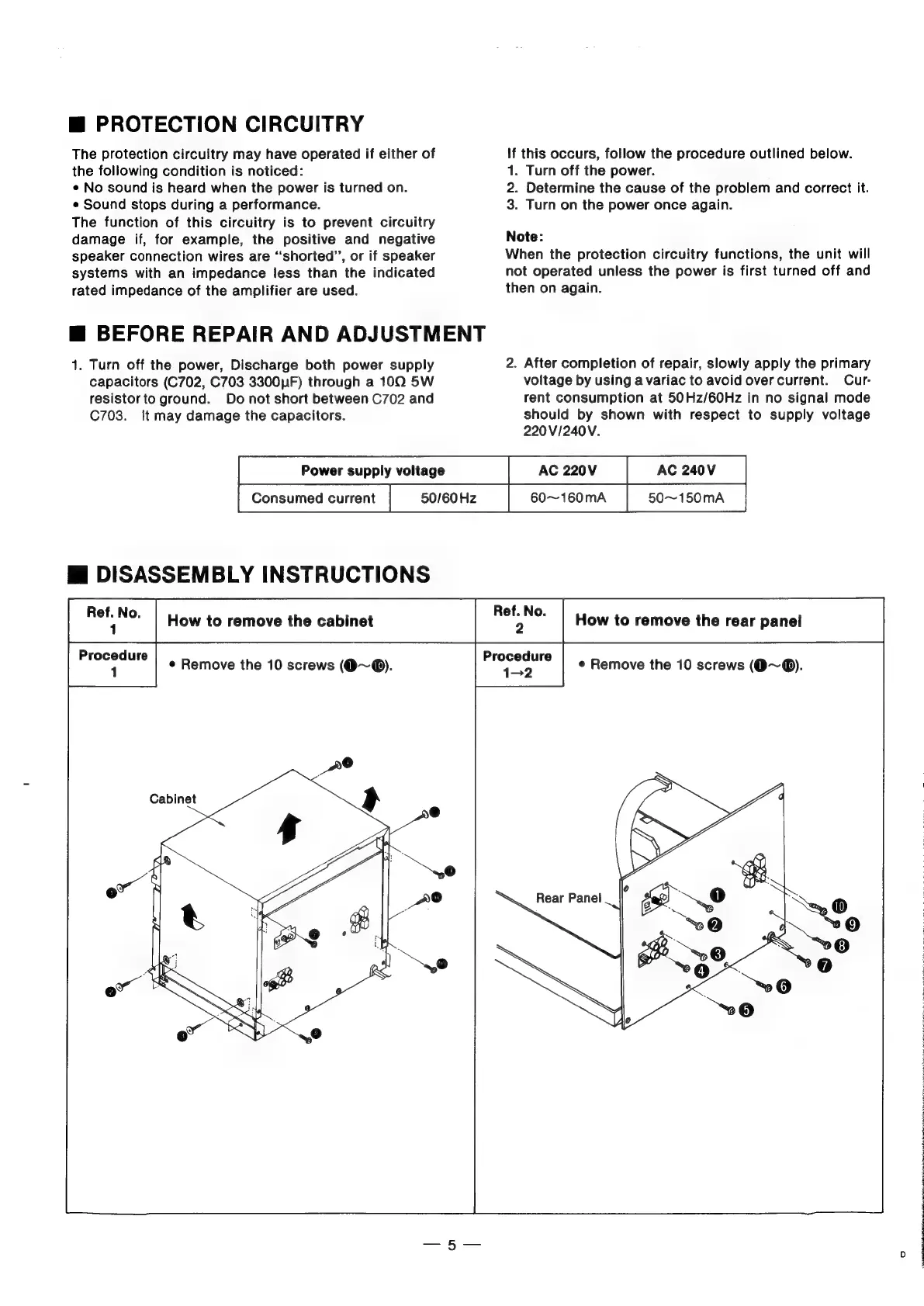 Technics SA-X800L - Protection Circuitry; Before Repair and Adjustment