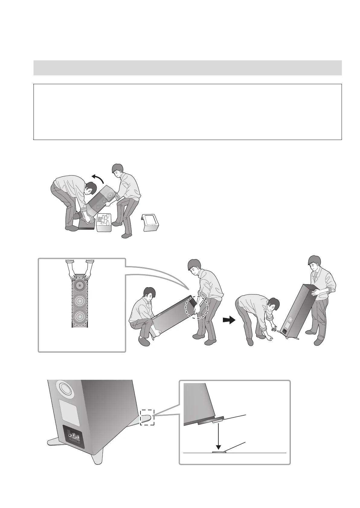När högtalarens installationsplats ändras, ska ni alltid vara två för att lyfta den.