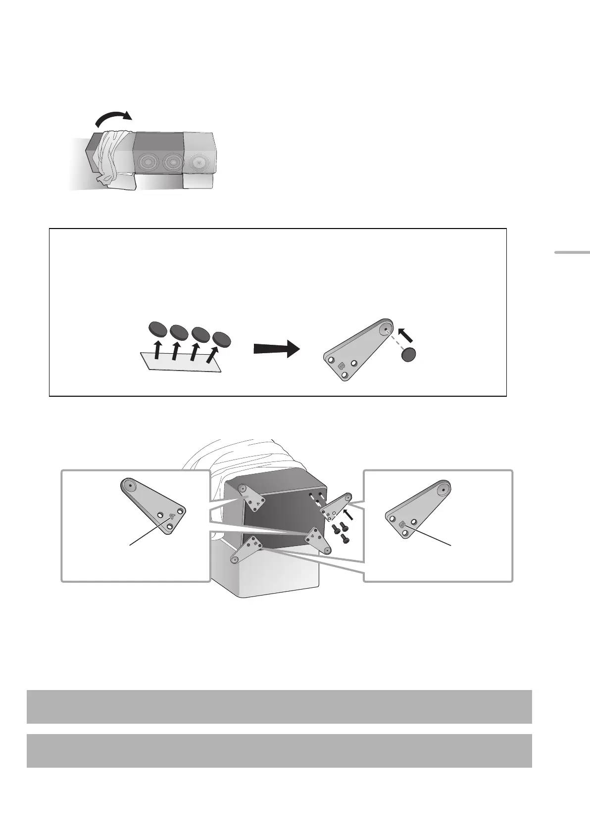 6 Bien fixer les embases (4 pièces) à l’enceinte à l’aide des vis fournies.