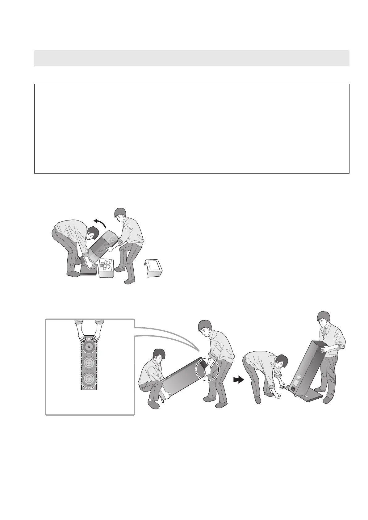3 Transporter l’enceinte à l’endroit de l’installation en l’inclinant vers l’avant et la placer sur un tapis épais (ou similaire).