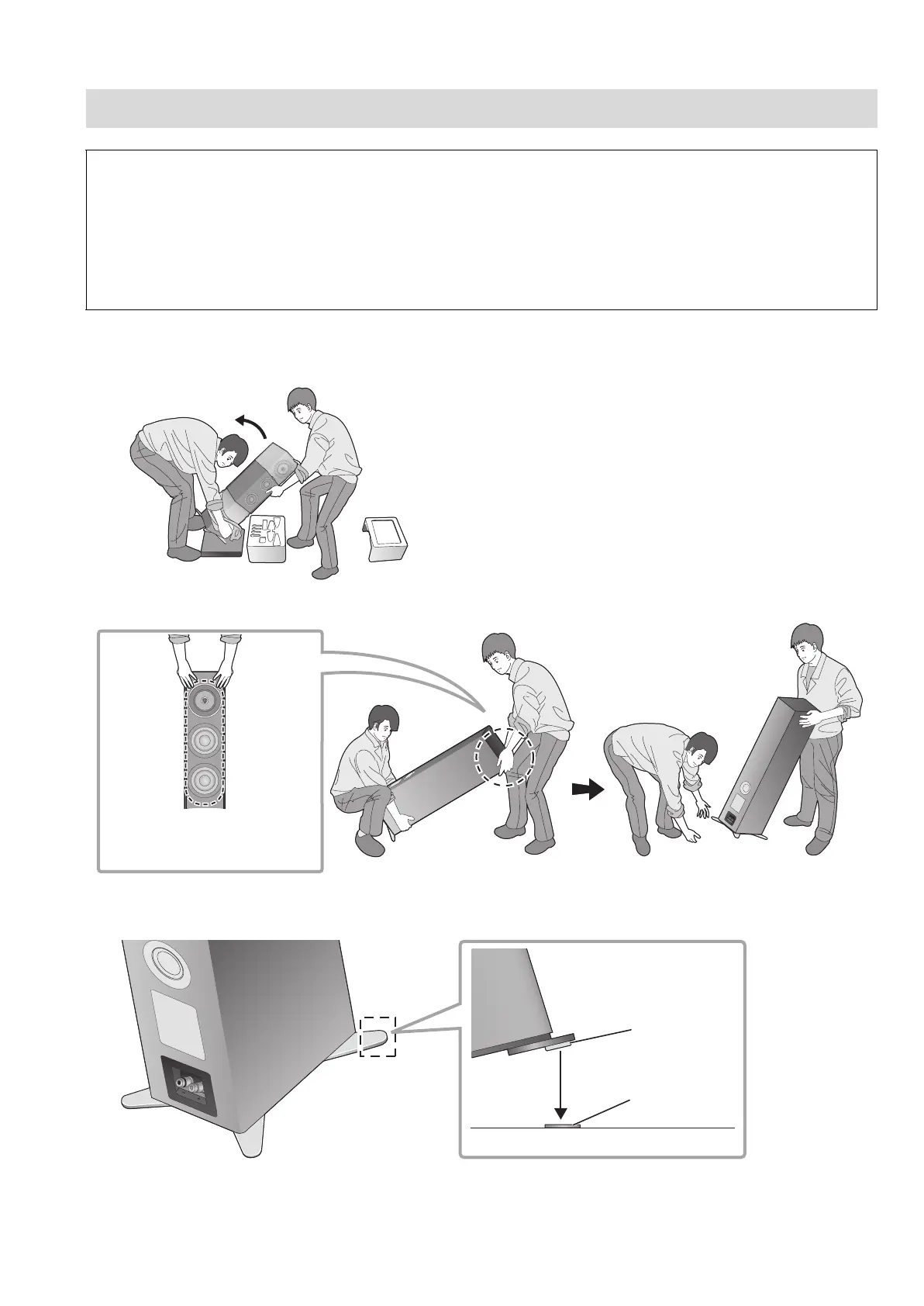 attention à ne pas vous coincer les doigts ou les orteils entre l’enceinte et le sol et à ne pas renverser l'enceinte.